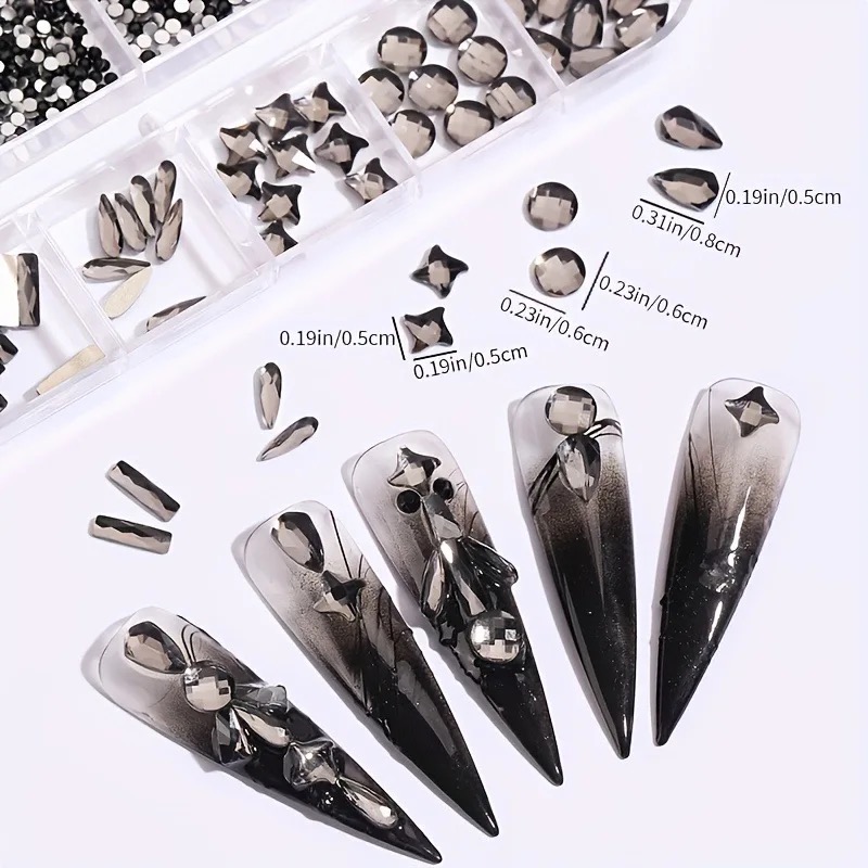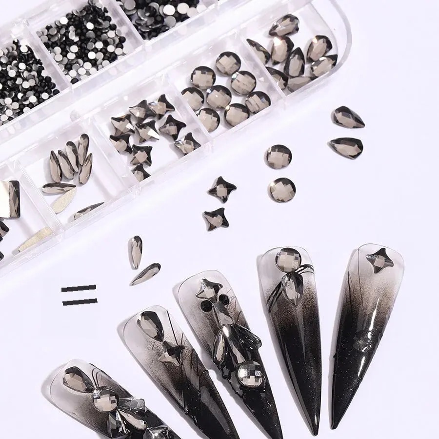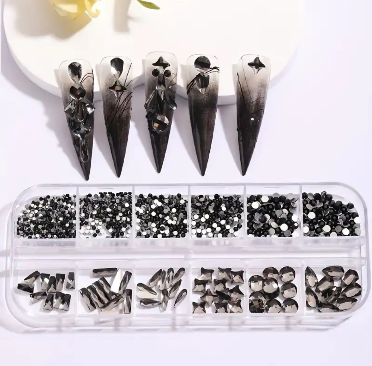Black crystal Mix Shape And Sizes Rhinestones Set