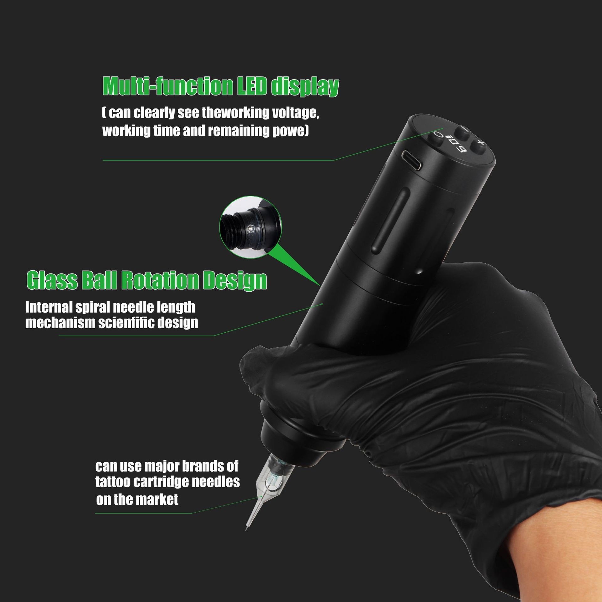 Wireless LCD screen display tattoo machine (CHB02930)