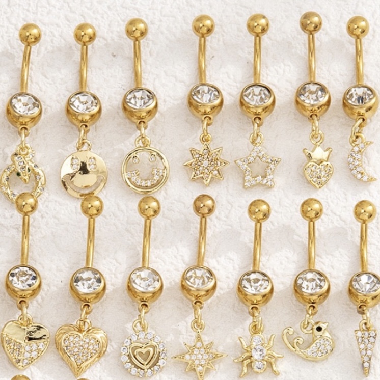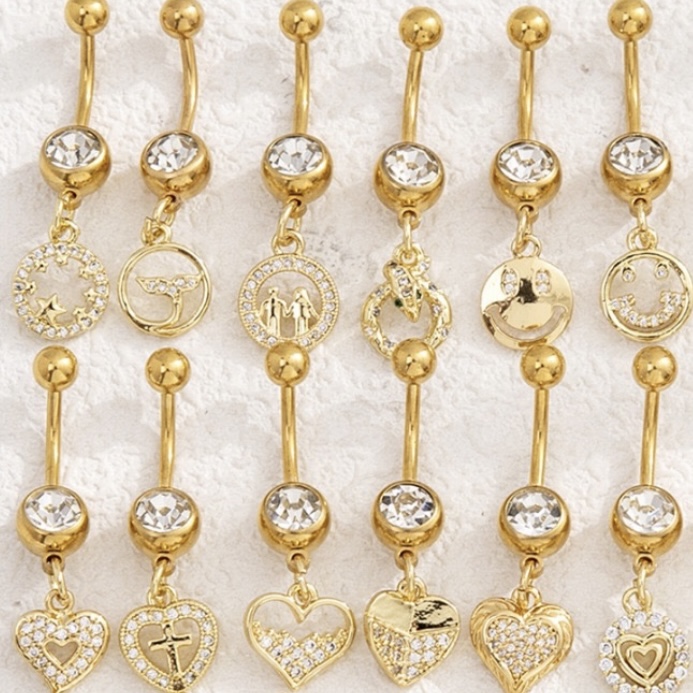 6pcs Rose gold Set of navel piercing ring pendant (CHB00930)