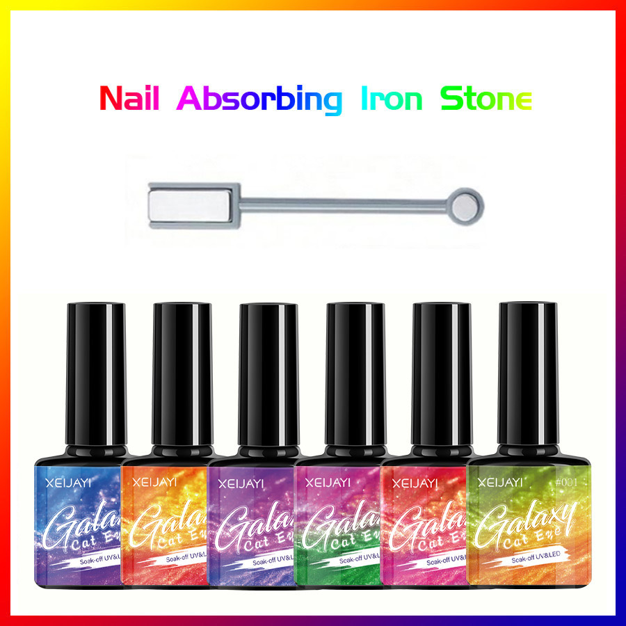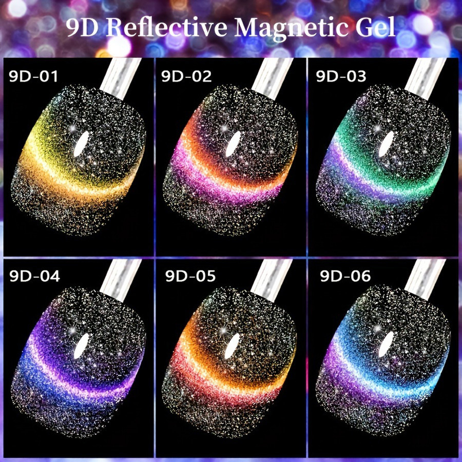 Set of 9pcs Rainbow cateyes gel+1 free magnet (CHB01571)