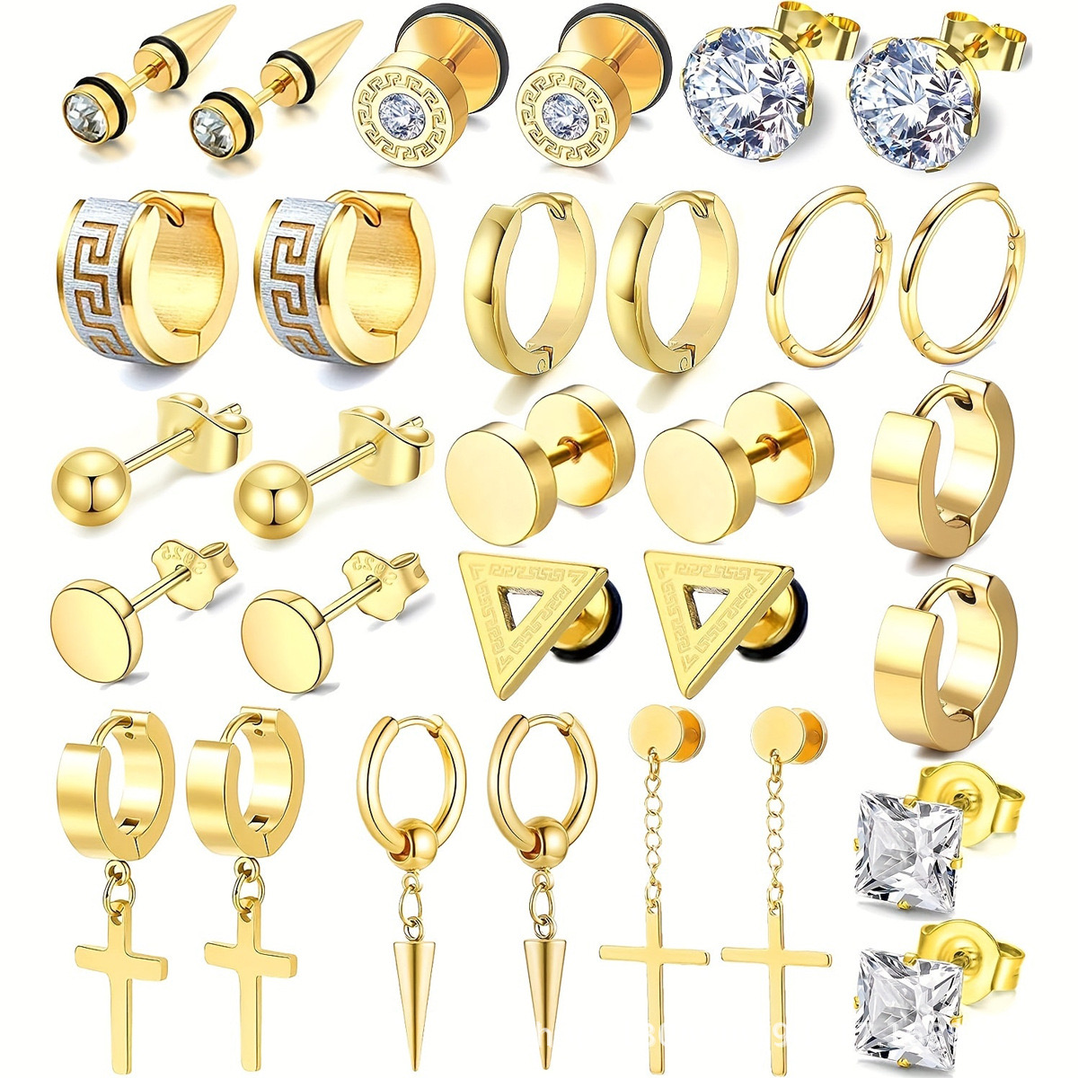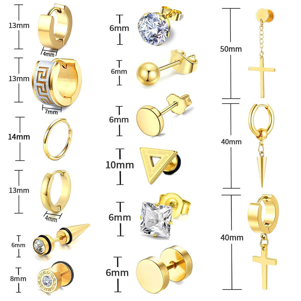 15pairs unisex earrings set (Black, silver and gold)