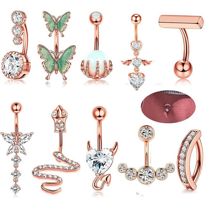 6pcs Rose gold Set of navel piercing ring pendant (CHB00930)