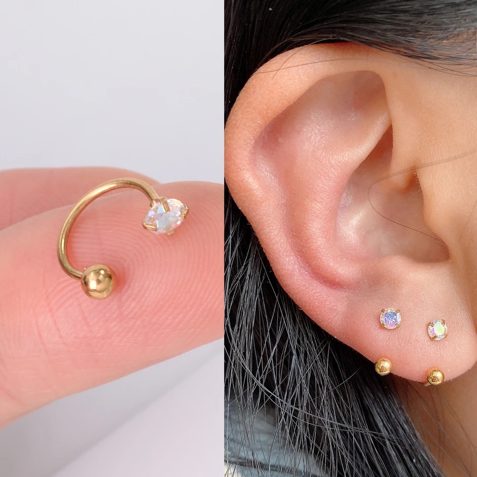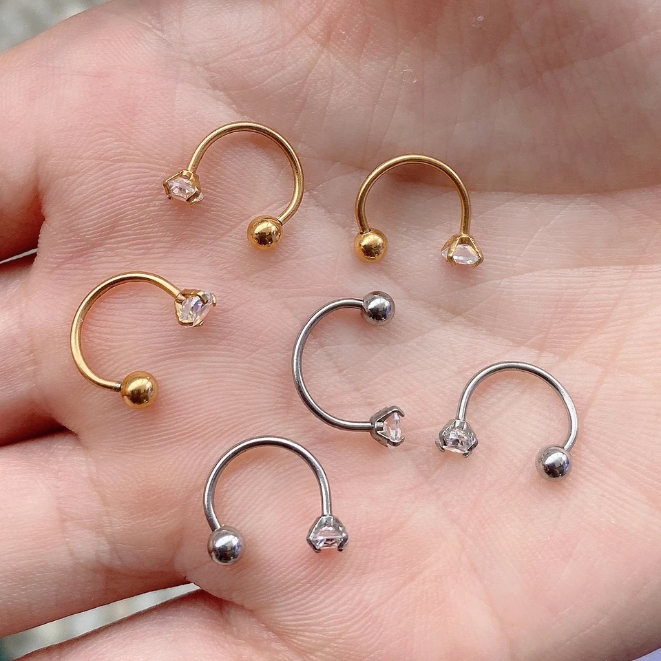 Crystal horseshoe piercing ring