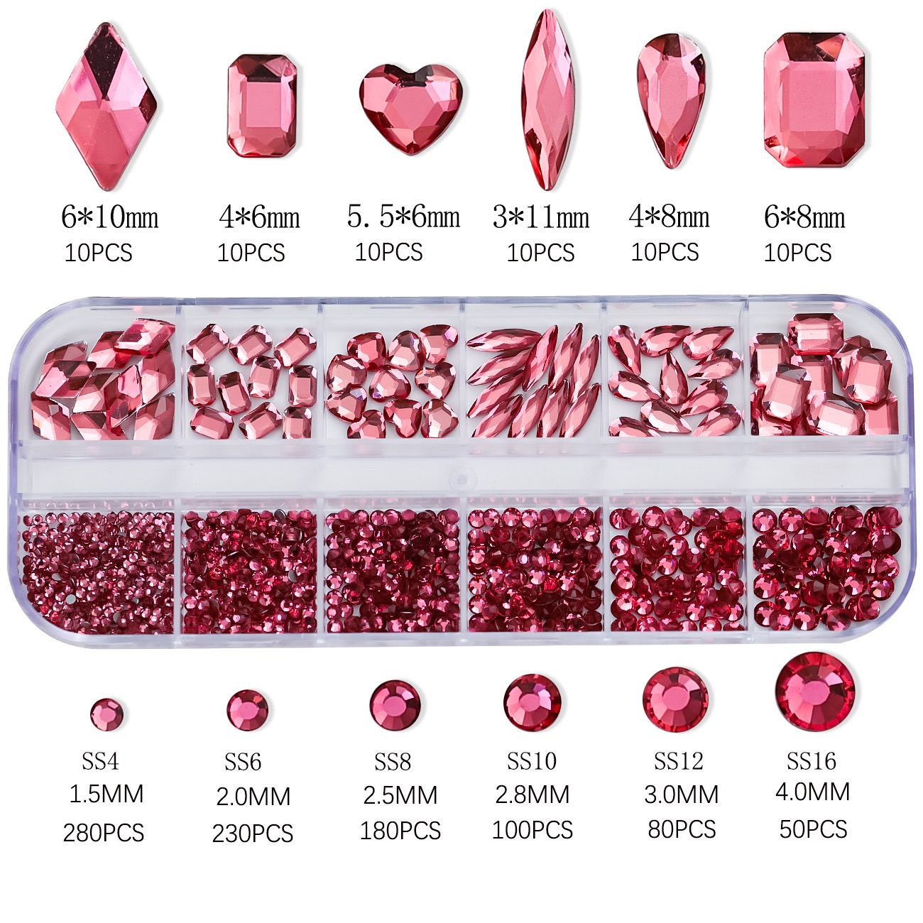 Hot fuchsia Mix Shape And Sizes Rhinestones Set