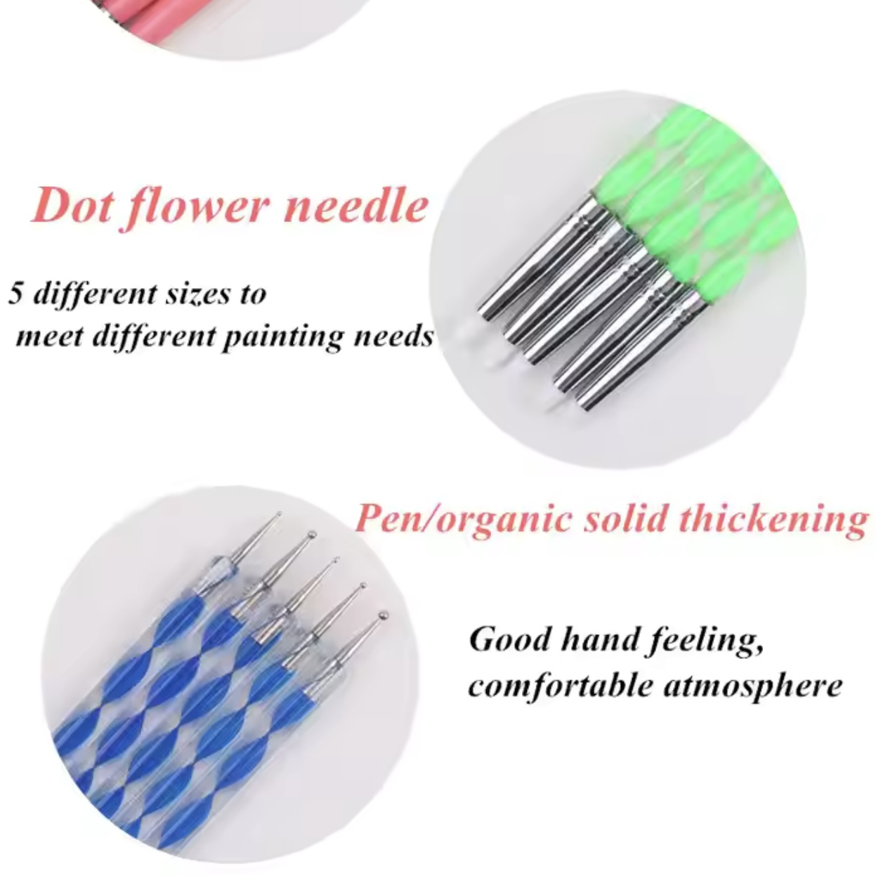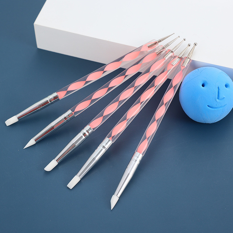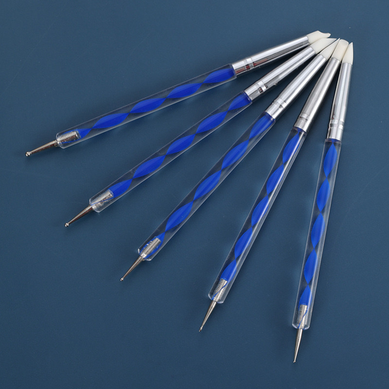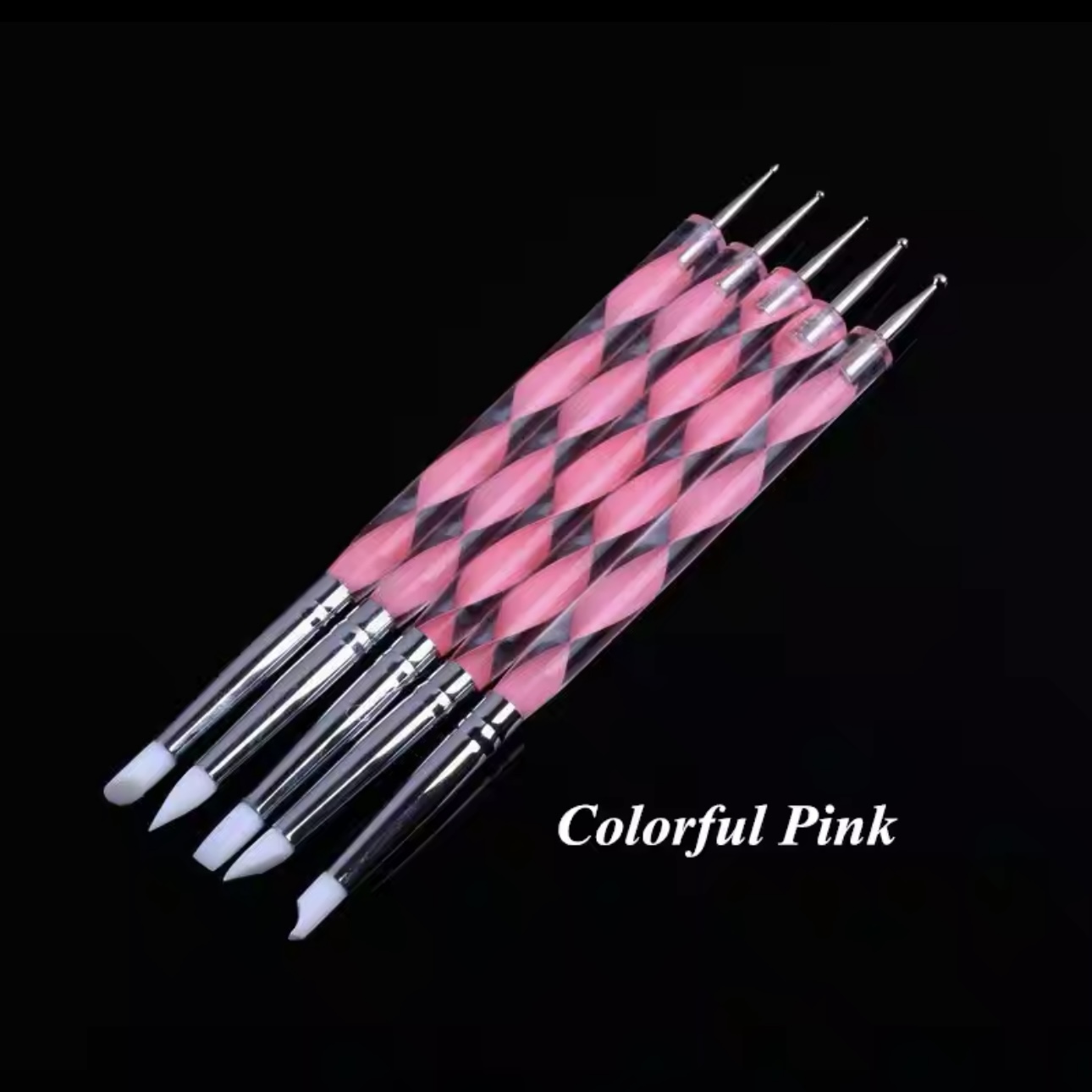 5pcs Dual purpose dotting & silicon nail art brush (CHB02883)