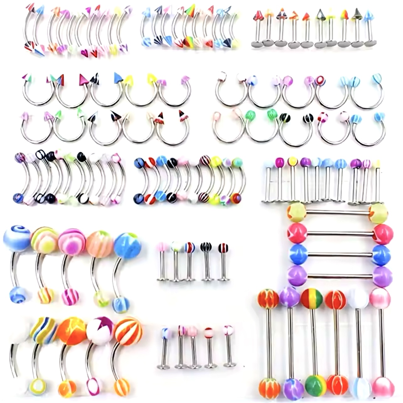 105pcs Multi colored ear and nail Piercing ring (CHB00981)