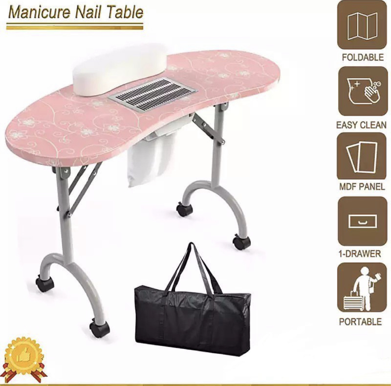 Tags: Foldable Mani Desk For Home Beauty Salon with Wrist Cushion Fan Dust Collector Wheels Carry Bag Manicure Table Nail Station