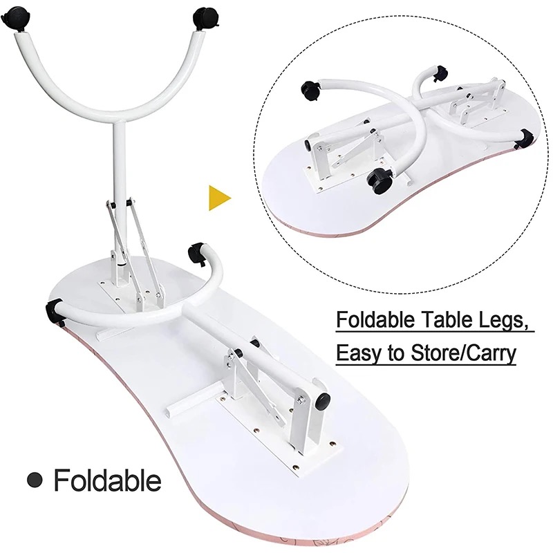 [High Material this portable manicure table station is constructed of High Density Particle Board , Metal Legs, Plastic Drawer and Sponge Pad., sturdy and durable to use.Our desktop is protected by a layer of film, please tear off the film when you receive the goods. [Professional Design spacious tabletop (37 × 17.3" tabletop) can keep all your items neat and tidy. The corner of this nail desk is rounded to prevent damage caused by collision. [Removable & Foldable] This manicure table nail desk is designed with extra-comfortable & removable wrist cushion and folding metal legs for space-saving, a waterproof zippered carrying bag for storage & easy transport. [Lockable & Stable] 4 lockable rolling wheels for controllable movement; You can lock angle and wheels to ensure stability; Be able to fold it up and put it away when you don't need it. [Easy to assemble The sturdy portable nail table is easy to put together.It features stylish and fashionable design, which perfectlv decorates vour home and also adds a touch of elegant charm to your room. Pink pattern