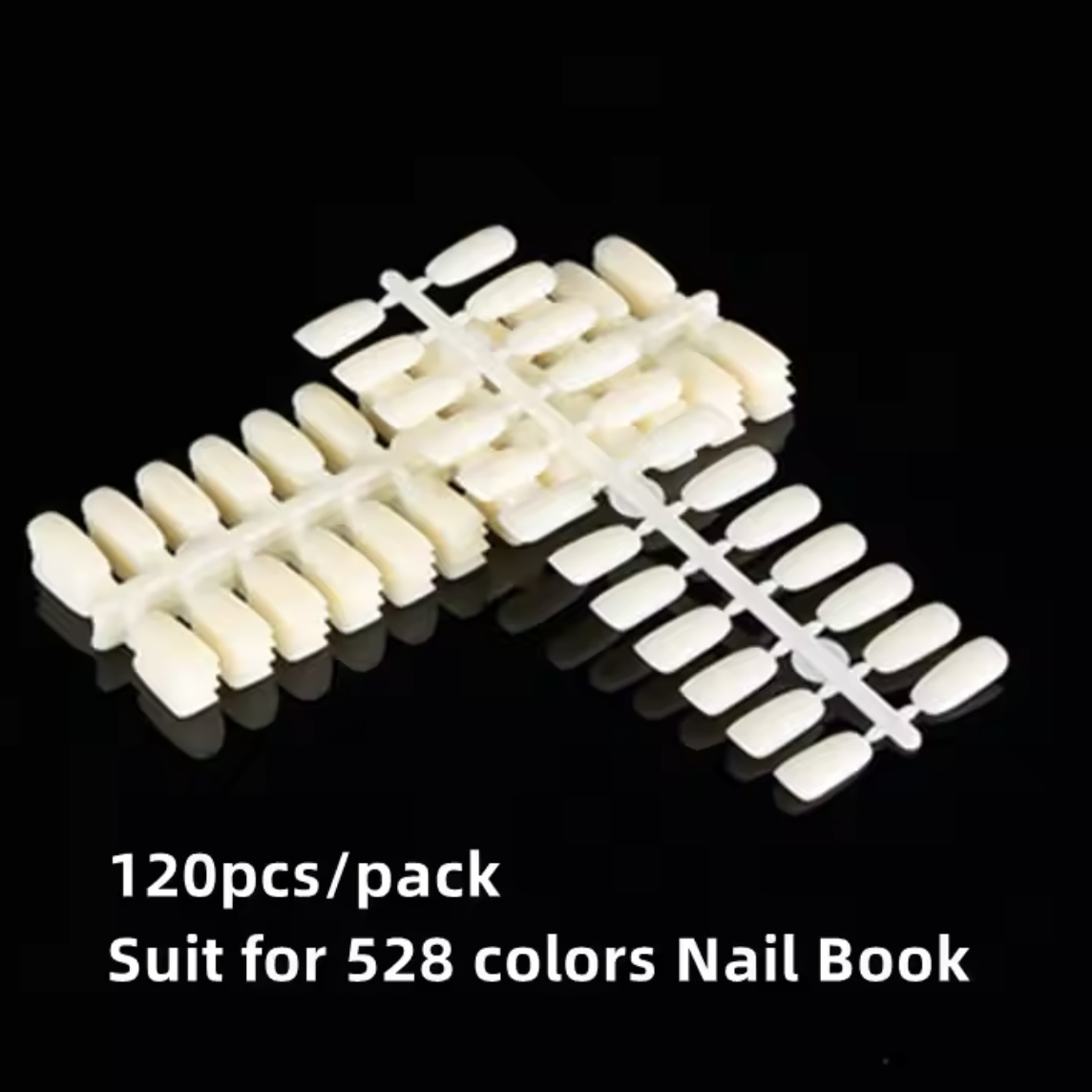 HOT SALE 120 Colors Nail Color Display Book Disassemble Snap On Design Nail Display Book with 120Pcs Nail Tips White for Manicurist Feature: 1. 120 Nail Pieces: Nail Art Show This expansion can display 120 nail pieces, you can show your nails in 120 colors. 2. Snap on Design: Nail color display adopts snap on design, which can be disassembled freely, and the color can be changed at any time, which is easy to operate. 3. Easy to Arrange: The Nail display makes it easy to swap and move the nail strips to make room for new colors and new styles of nail pieces, allowing them to be freely combined at any time. 4. Easy Installation: Easy to install, no glue, no sticking required, both the display strip and the nail piece can be snap fastened. 5. Plastic Material: Nail polish display tips are made of plastic material, which is wear resistant and durable, and can be used for a long time. Specification: Item Type: Nail Color Display Book Material: Plastic Product Color: White Package List: 1 x Showcase 120 × Nails Tips 14 × Nail Strips 1 x Nail Display Stand