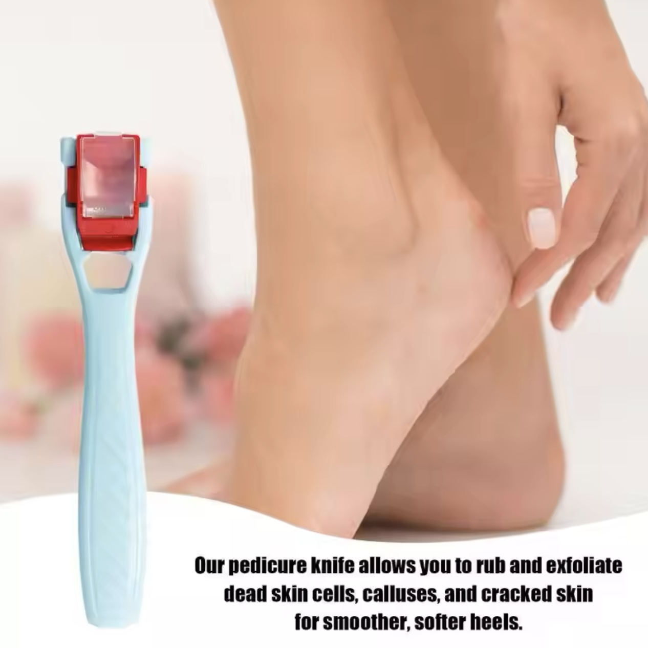 1Set of Callus Corn Shaver Foot Razor Scrapper for Dead Skin Remover. [MAKE IT SMOOTH) Do you suffer from dry skin and calluses? If so, letthis callus shaver be your instant solution. Our pedicure knife will let you rub and remove your dead skin cells, calluses and cracked skin for a smoother and softer heels. [NO MORE PAIN] Now you do not have to worry about hurting your feet or hands while removing calluses with this callus remover. We design it with safety in mind with our razor sharp blade that can effectively remove thick callus without hurting your hands or feet. [BETTER GRIP FOR YOUR COMFORT Experience an easy callus/skin scraping with less hand fatigue. Our foot callus scrubber's handle is made with plastic for a lightweight and convenient hold. [DESIGNED WITH SAFETY) we want your safety and convenience. Our callus knife has a dander storage box that can prevent the dander/callus from flying around and convenient for you to get an extra callus blade whenever you need it. [WHAT'S INSIDE You can now say good bye with problematic and dry skin - for a long time. Our package has 1 callus scraper including 10 callus blades with container for your multiple use. Portable pedicure knife