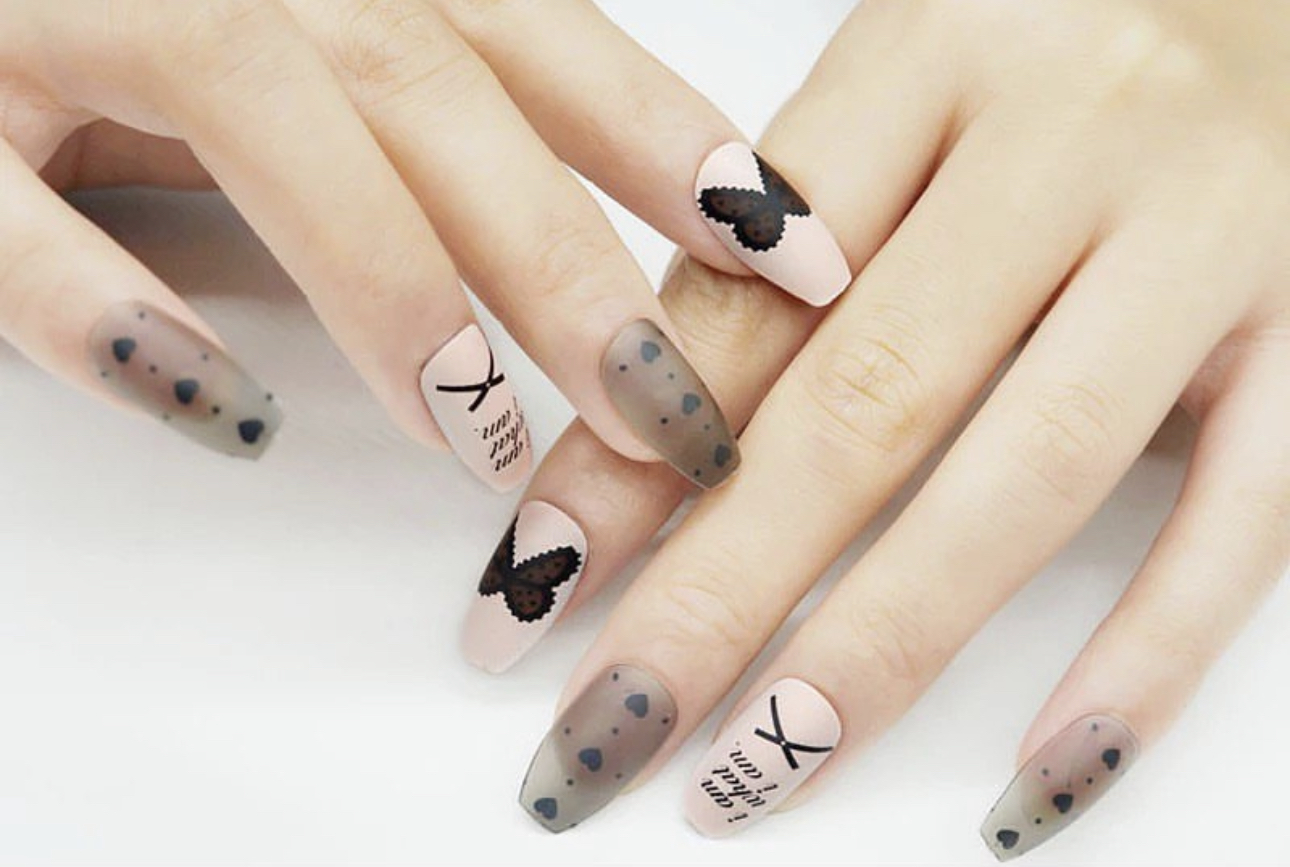 600pcs medium half frosted coffin full cover nails (CHB00988)