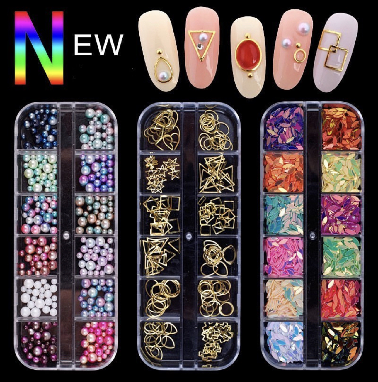 Mix nail art jewelry, rhinestones, pearls and sequins (CHB00778)