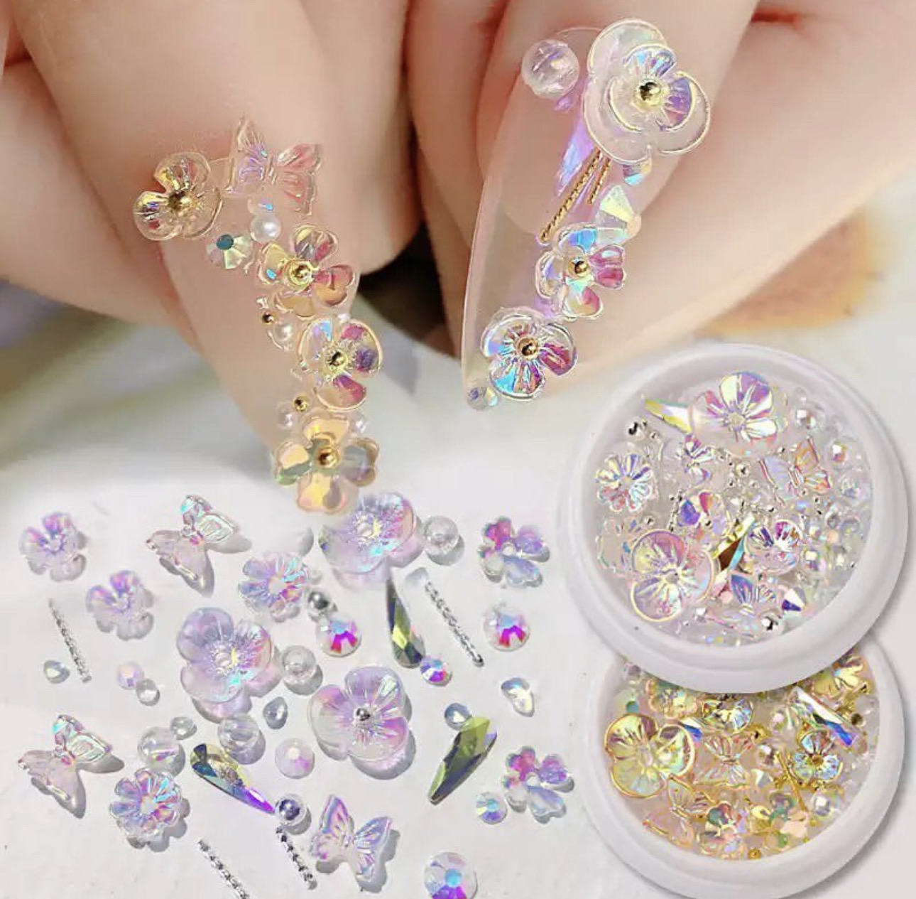 Crystal flower with butterfly 3D nail design (CHB01185)