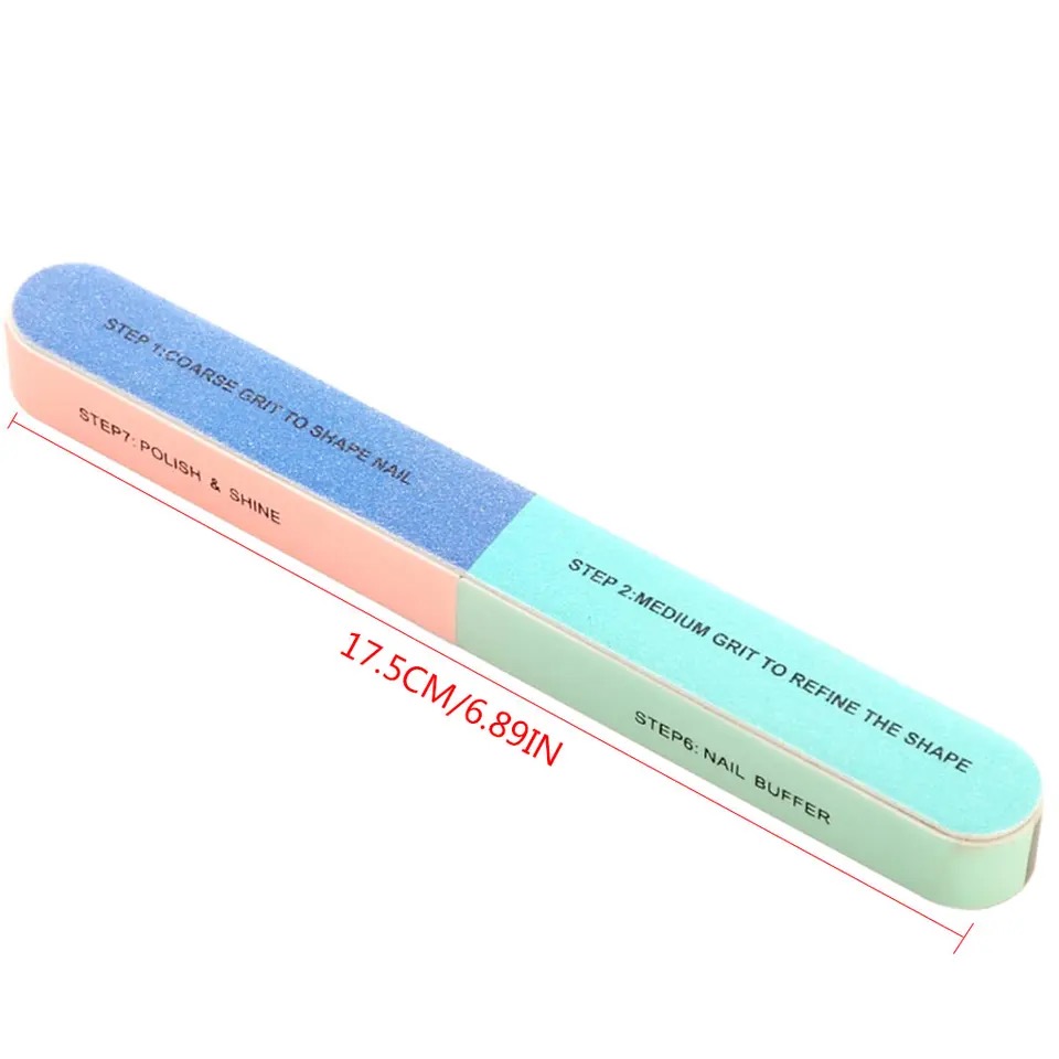 Nail Art Buffer Sanding Block Remove Files Manicure Pedicure Nail Tools Polish Shiner Nail Care Buffing Nails Tool Wholesale Size:17.8x1.6x2.1cm Quantity:5pcs Usage:7side Side1:Coarse grit to shape nail; Side2:Medium Grit to shape nail; Side3:Fine Orit to smooth edges of nail; Side4:Conditionon nail Side5:Smooth Nail Side6:Nail Buffer Side7:Polish & Shine Feature: Nail sanding files polish block buffer nail tools This sanding file is essential tool for manicure and pedicure Suitable for all nail salon, nai art school or college,personal use and wholesale Sandpaper on surface, all you creat a poshing,shiner nail art