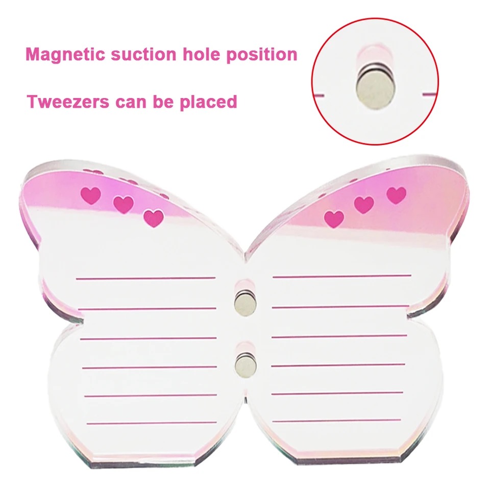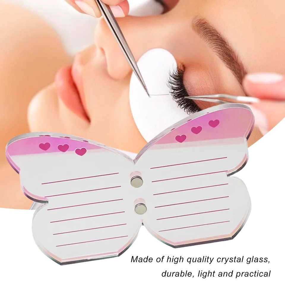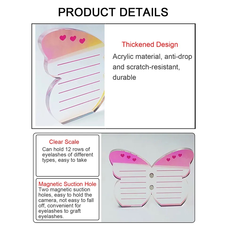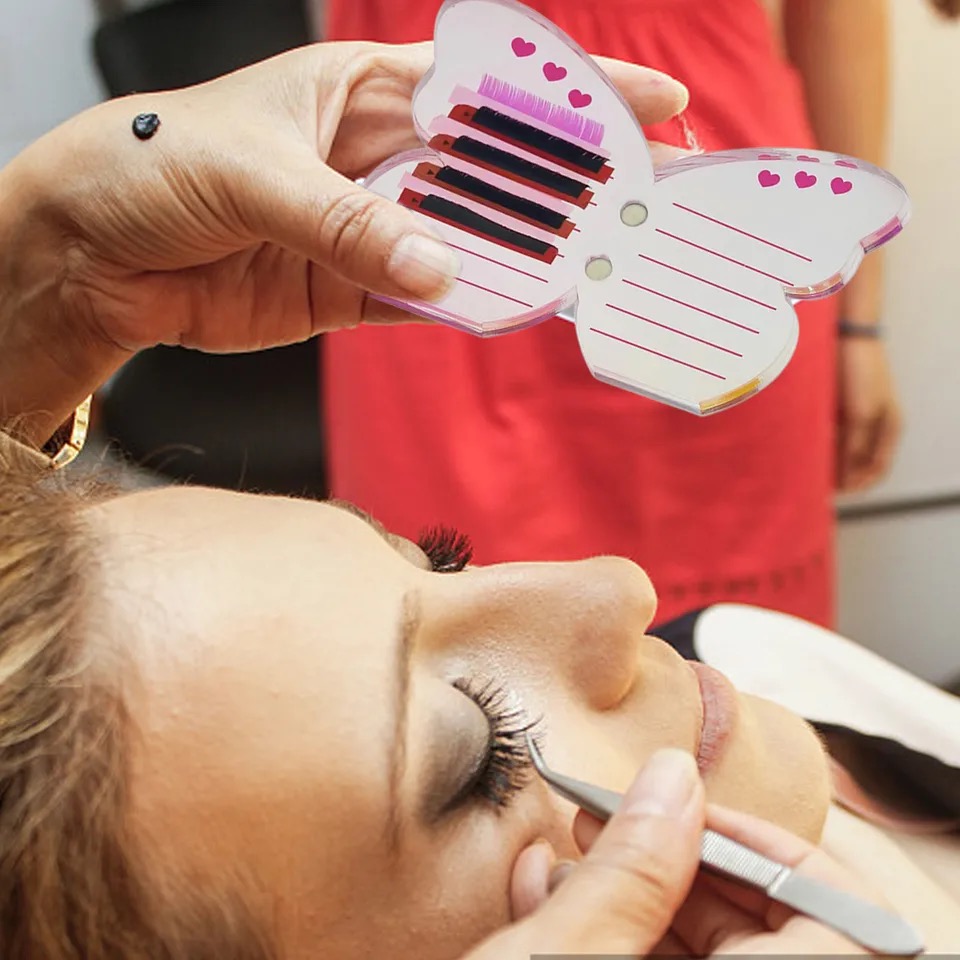 Product Name :Butterfly acrylic eyelashes pallet design Material : Acrylic Function:Magnify the eyelash extension, Clear different lengths of eyelashes. Tips: We have forced the glue holder into the groove , More convenient to use !