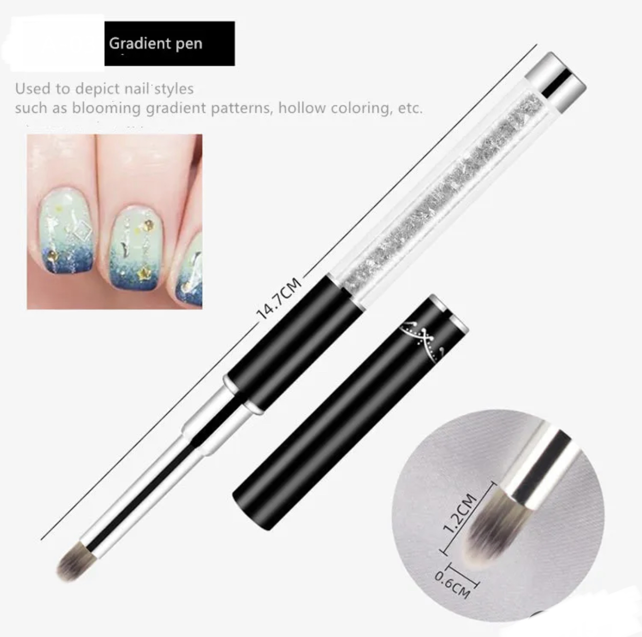 Description: 100% Brand new & High quality Ice black brush, ice black penholder. Japanese nylon wool. Moderate softness and toughness, meticulous process, not easy to depilate, better operability. Selected acrylic material for the pen holder. Each model is widely used in daily manicures, not only suitable for professional beauticians, but also very friendly to novices. Special for finest detailing tasks, like painting leaves, flower petals or other pattern. You can choose your favorite UV Gel or nail polish, use nail pen to coat or paint a pattern on your nail, or attach nail sticker and use LED light to dry it out. Please wash it carefully after use, keep it clean and safe for reuse! Specifications: Type: Nail Brush Style: Fashion, simple, durable, ice black Material: Nylon wool, Acrylic Color: As the picture shows Size:As the picture shows Package Included: 1pcs Nail Brush Note: -Due to hand measure, the size may have 0.5-1 cm error -Due to Different Monitor, the color may have difference -Due to long shipping, the item may damage in transit, if the item damage, pls contact us firstly immediately before leave feedback, thanks for your understanding zuofily.