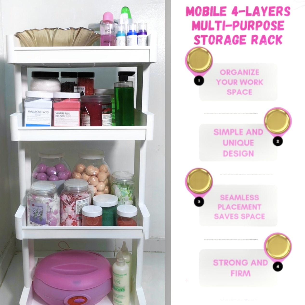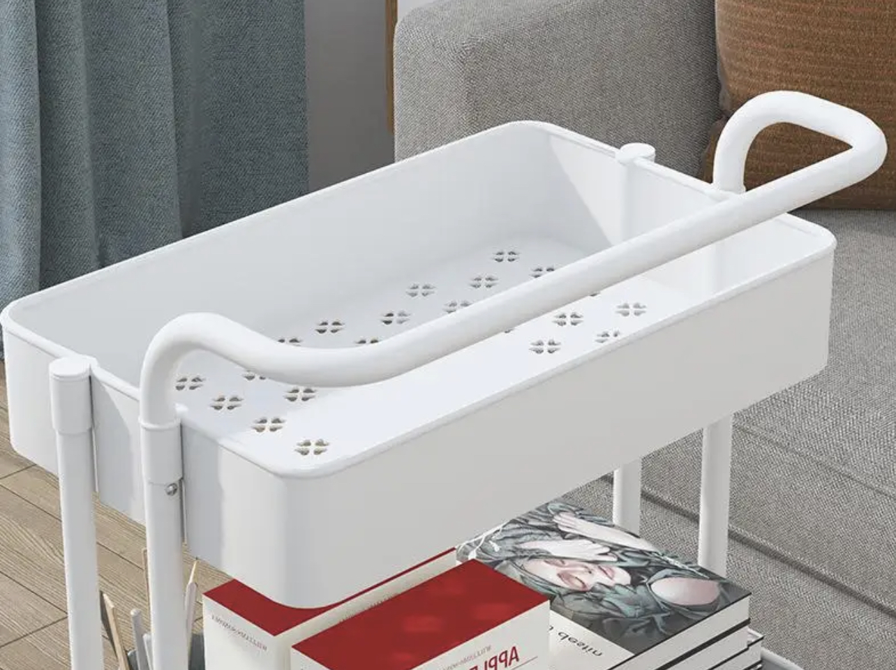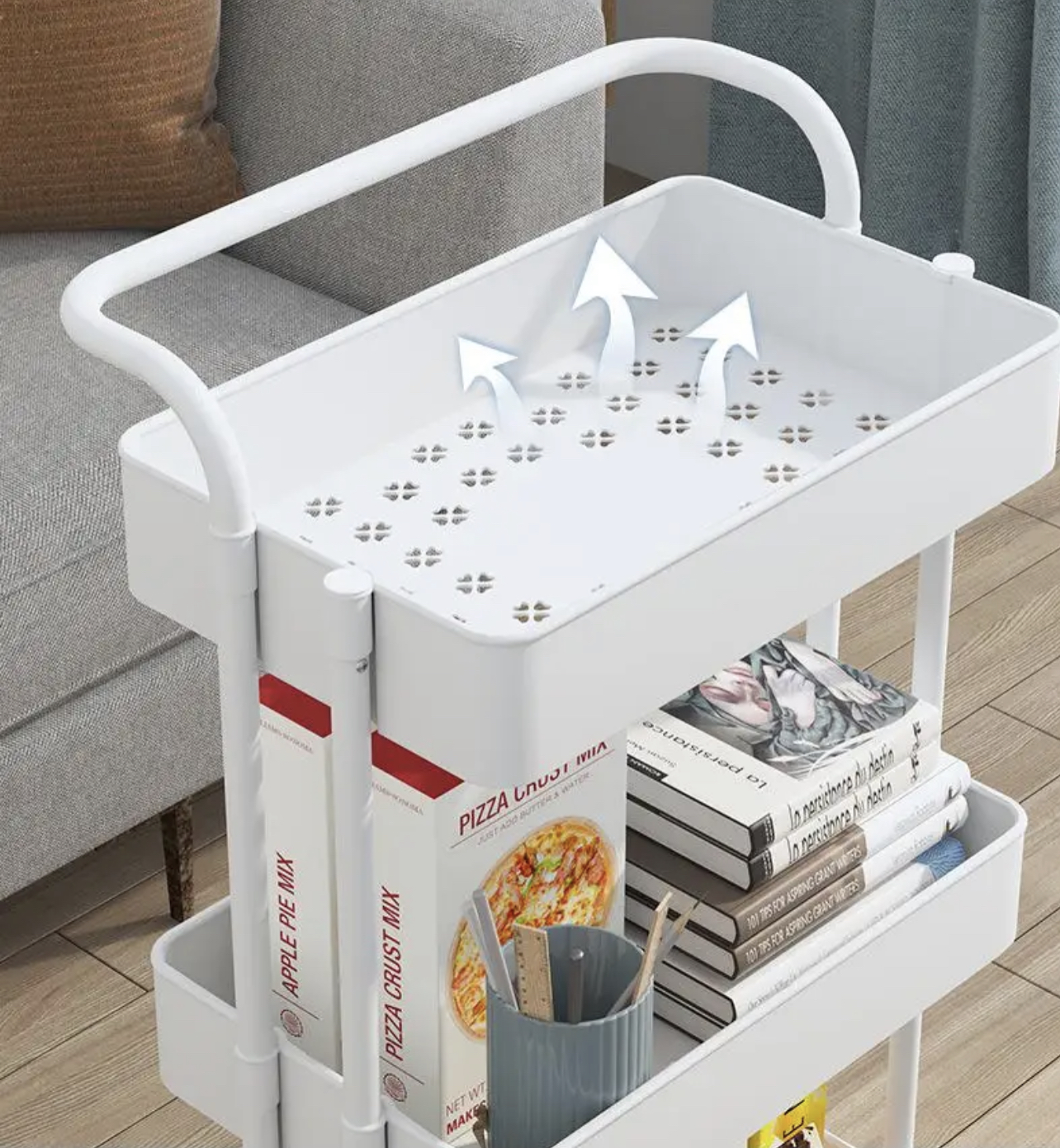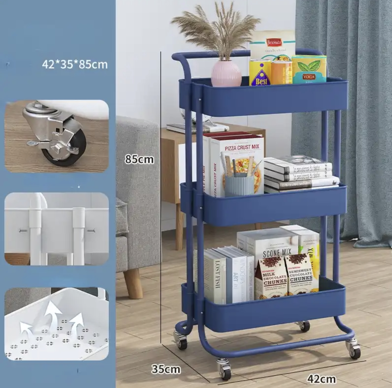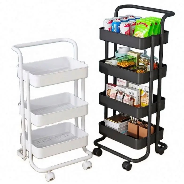 Description 3 Tier Rolling Cart Heavy Duty Utility Carts With Wheels Rolling Cart With Handle And Lockable Wheels SPA Storage Shelves Features: 1. Made of ABS Material, 2. Small volume, large capacity, 3. Move freely, easy to use. Specification: Product name: Multifunctional storage trolley Material: ABS Colors: White, Black, pink Product size: 75*26.5*38cm Packing list: trolley*1