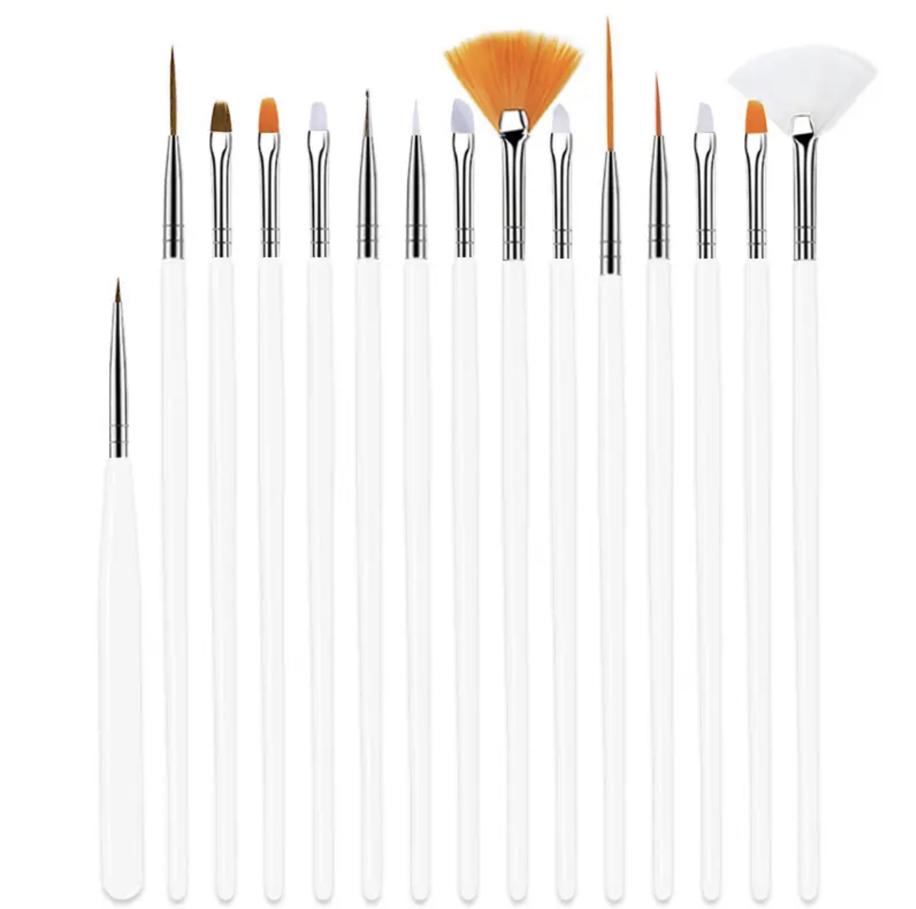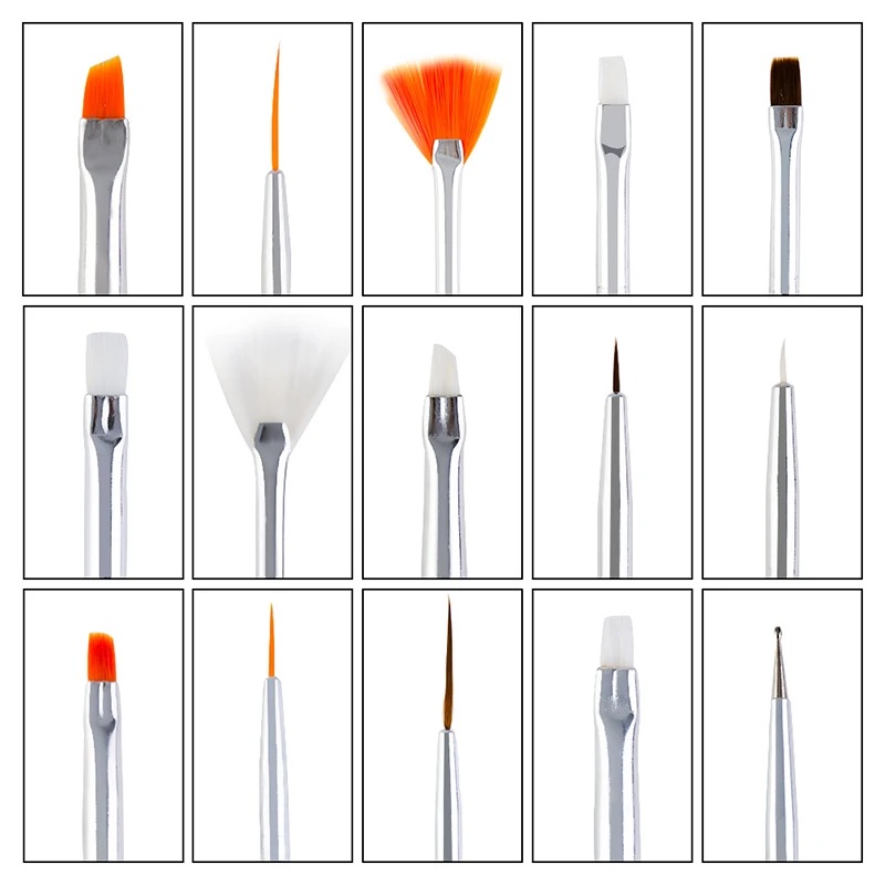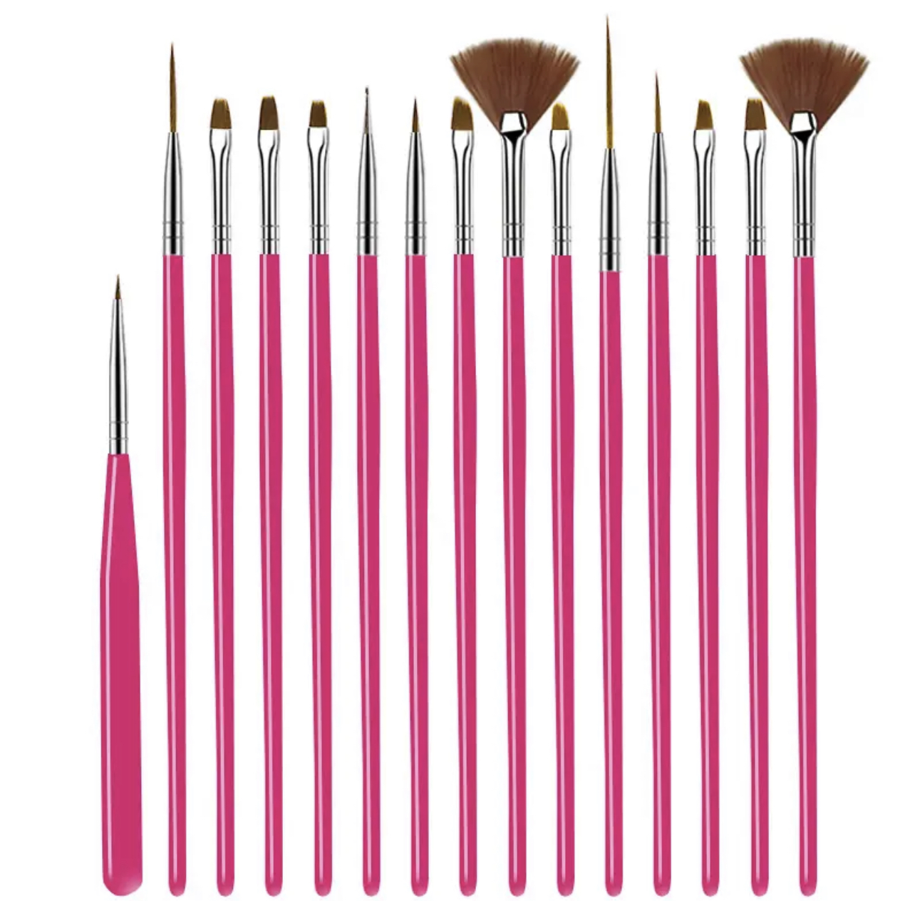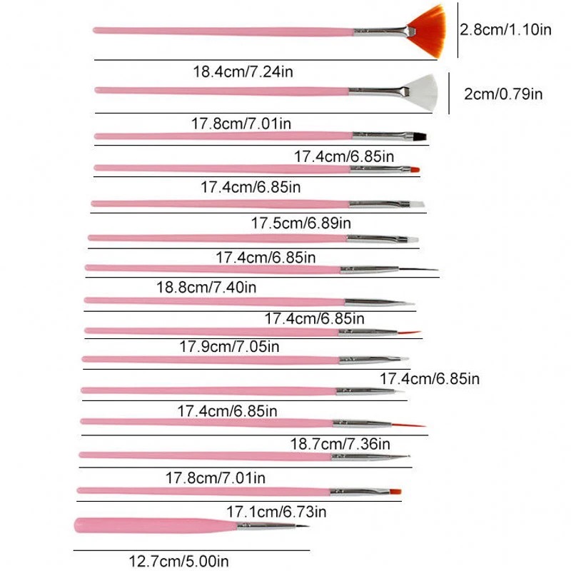 Features: - Ideal for fine nail art work. - Perfect for professional Nail Salon - Easy to handle and use. - Allow you to create beautiful nail designs in seconds! Specification: Size:as the picture shows Color: Pink, White, Black, Rose red Material:Nylon Hair,Plastic Package includes: 15Pcs/Set Nail Brush Note: 1.Due to the different monitor and light effect, the actual color of the item might be slightly different from the color which is showed on the pictures. 2.Please forgive 1 cm/0.39"-3 cm/1.18" measuring deviation due to manual measurement.