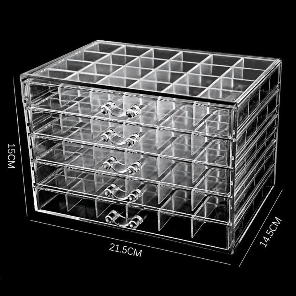 1. The transparent storage box is made of high-quality acrylic material, which is durable, dust-proof and moisture-proof. 2. Stackable combination to save desktop space. 3. Multifunctional: It can easily store jewelry, cosmetics, nail polish of various sizes, even necklaces, bracelets, big earrings, powder, lipstick, masks, etc. 4. Drawer compartment design, better protect jewelry, neat and clean, easy to take. Specification Material: Acrylic Color: Transparent Size: 5 layers: 21.5*14*14.5cm Drawer size: 20.4 * 13.7 * 2.7cm 24 Grid drawer, single size: 3.2 * 3.2 * 2.7cm 6 Grid drawer, single size: 3.5 * 3.5 * 2.7cm Packing List: 1 * Jewelry Storage Box