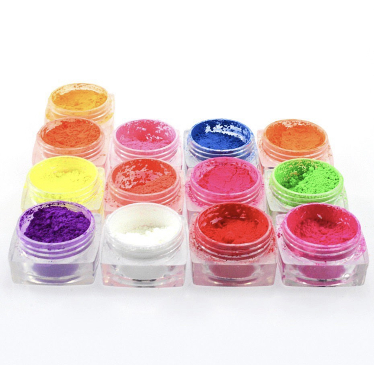 Item Condition: 100% Brand New Product Description: Net content: 2g Color: 12 colors Quantity: 12 colors 1 set Shelf life: 4 years Package includes: 1 set 12 colors fluorescent powder