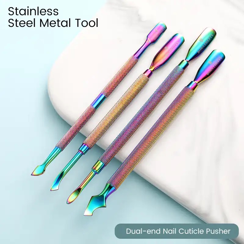 Dual end Rainbow Stainless steel cuticle pusher (CHB00435)