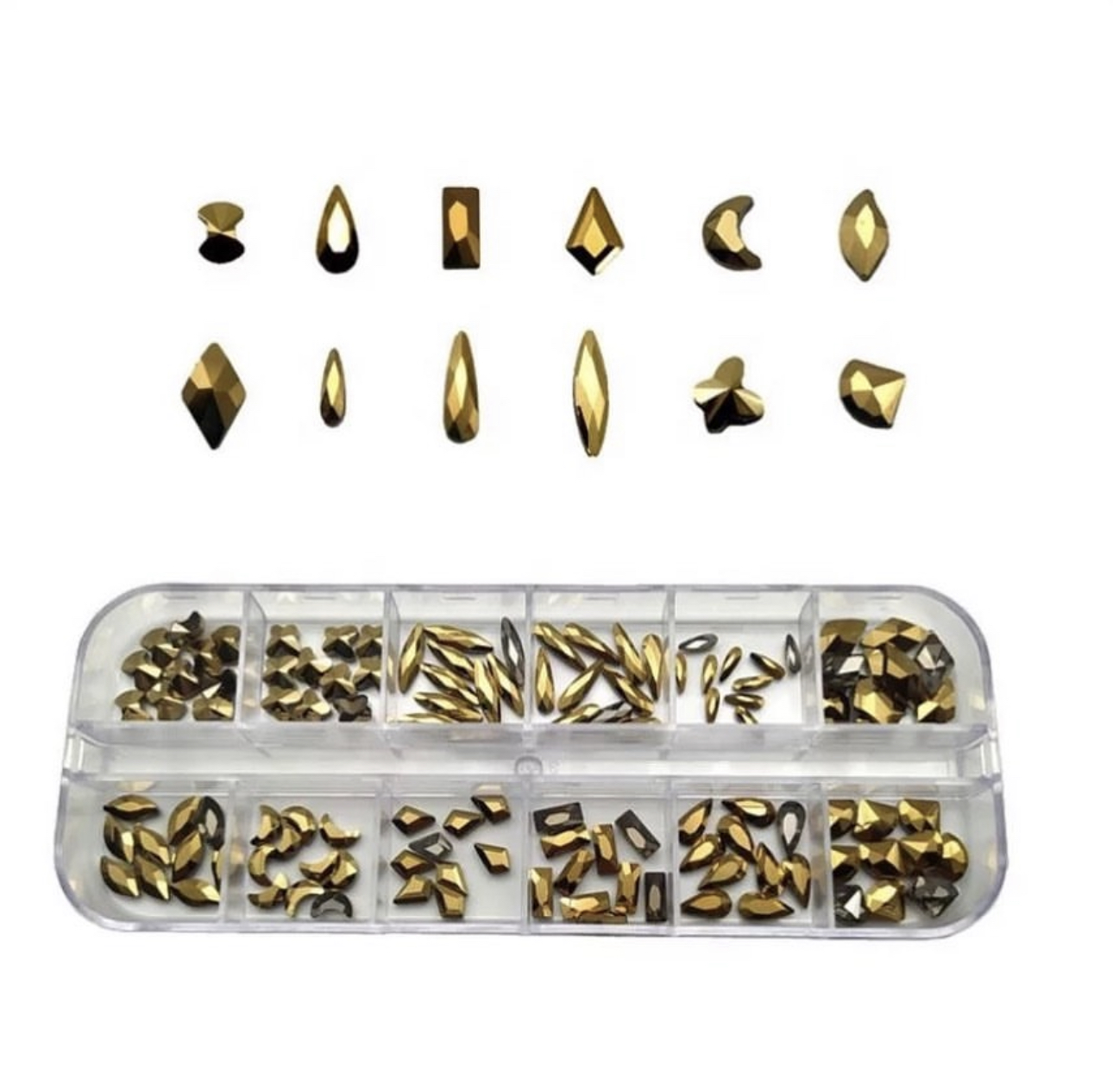 Tags: Box 12 Girds/Box Mix Shape Clear AB Gold Rhinestones Flatback Crystal Diamond Gems 3D Glitter Press On Nails Luxury DIY Accessories*