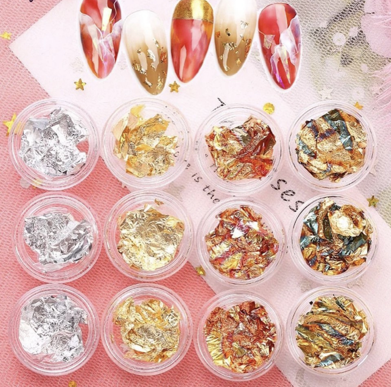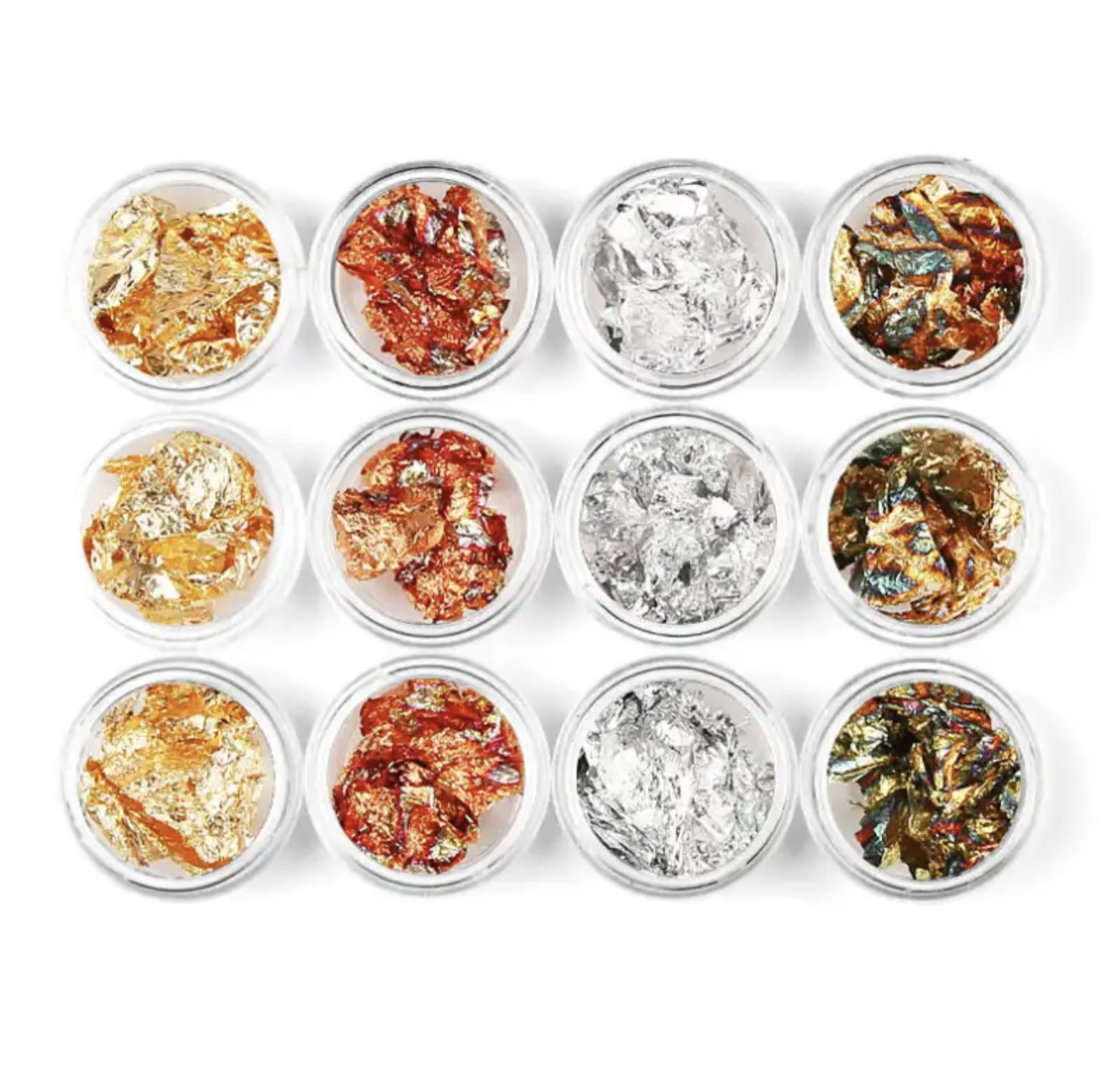 2. Set with 6 or 12 pots gold or silver foil flakes.