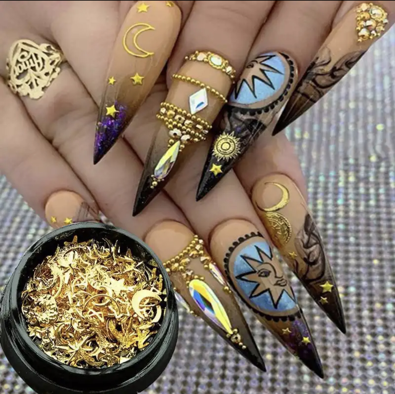 Gold Multicolored rhinestones nail jewelry (CHB00875)