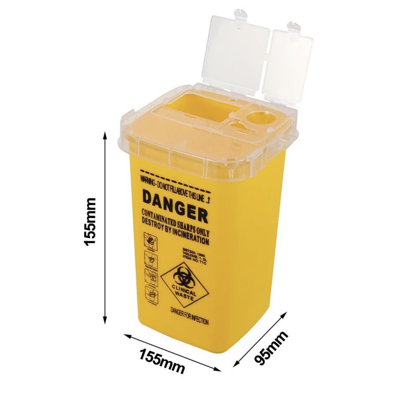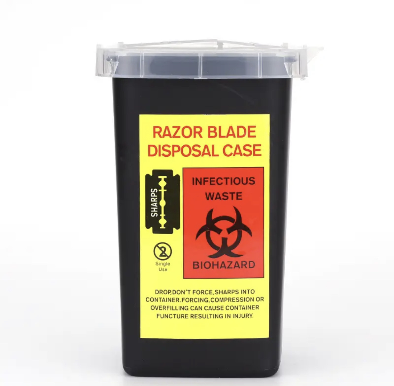 1L Capacity Tattoo & piercing artist Waste Box. Needles & Sharps objects Container disposal Bin Collect Waste Box Material: hard plastic Color: Yellow, Red, Black Weight: 86 g Size: about 155mmx100mmx95mm Capacity: 1L Suitable: Tattoo needles, disposable items, such as disposable handles. Suitable for handling sharps containing medicines and their residues. Not suitable for products contaminated by cytotoxins. Anti-puncture plastic shell Flip the lid