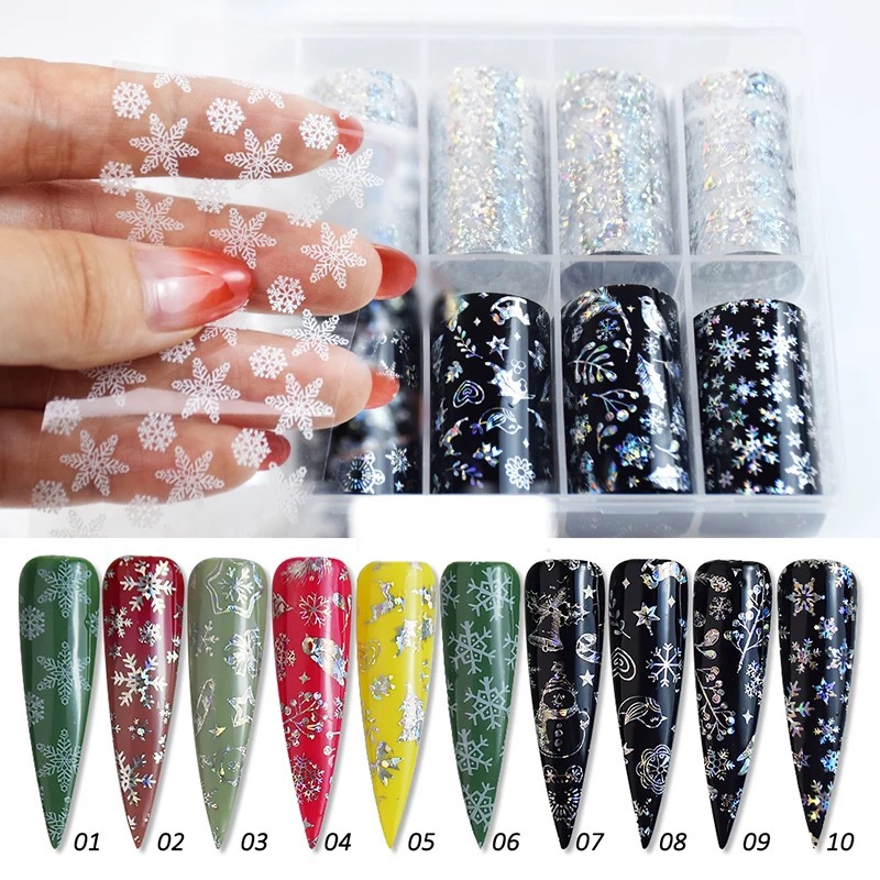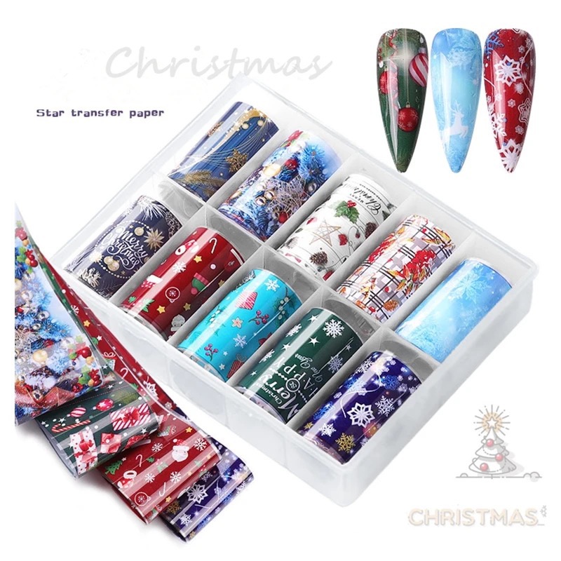 10pcs set holo xmas nail transfer foil (CHB00985)