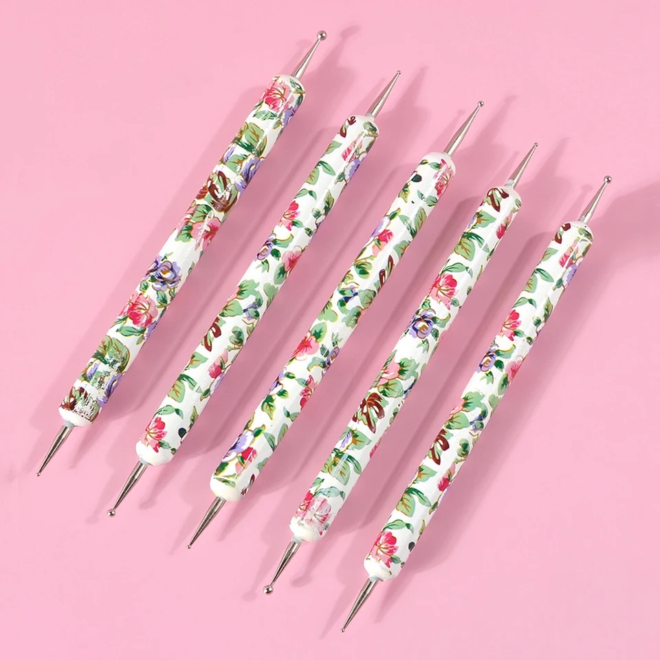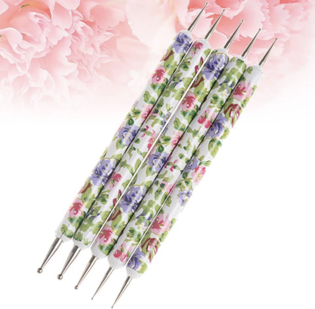 5pcs Dual purpose dotting & silicon nail art brush (CHB02883)