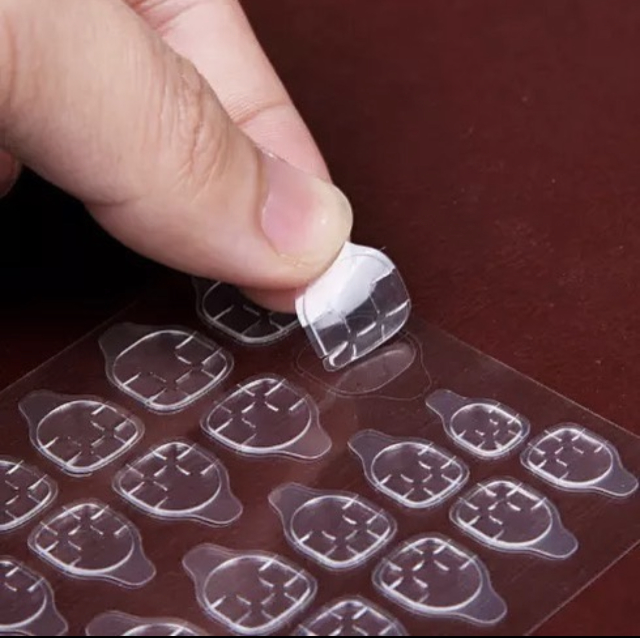 Tags: Tab glue, transparent press on glue, adhesive tab,