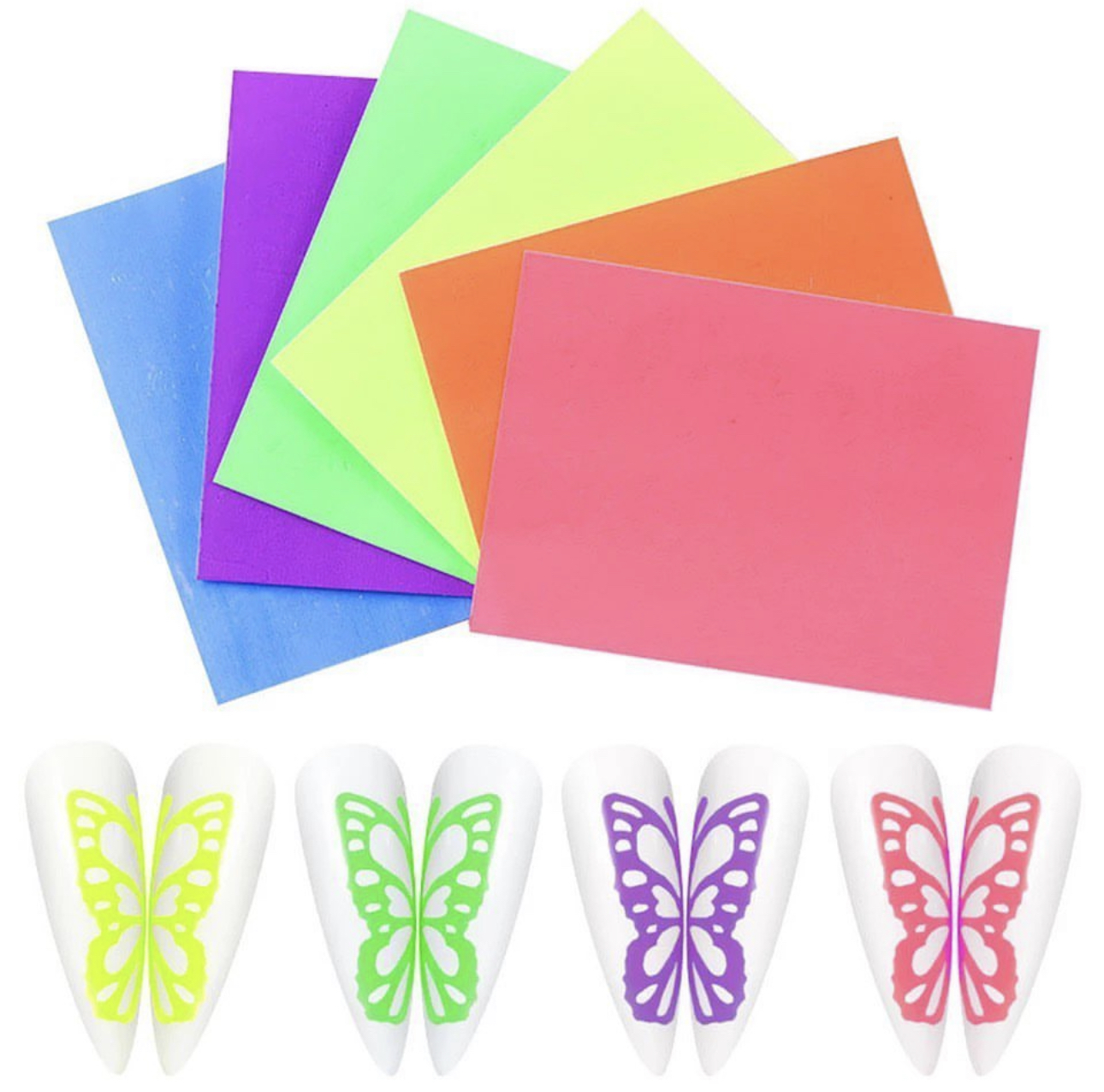 Florescent neon butterfly nail sticker set