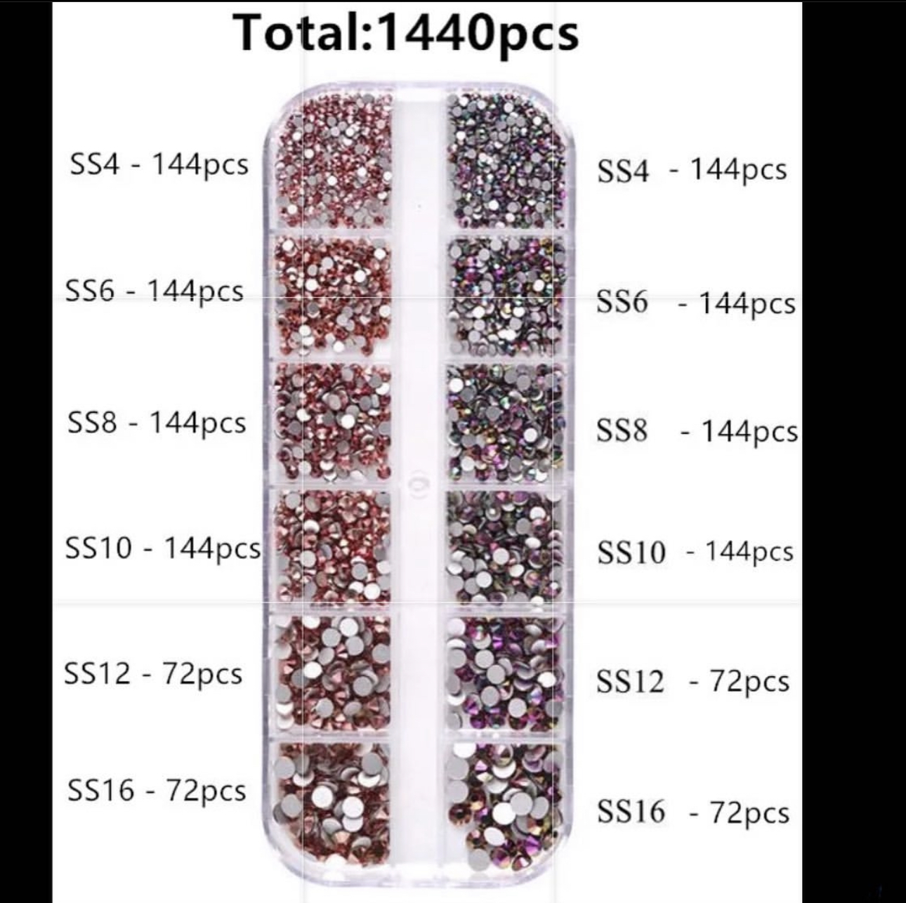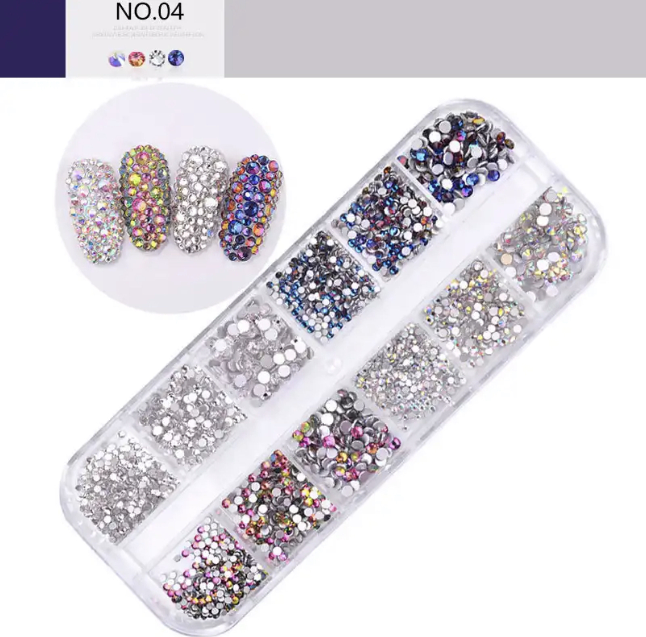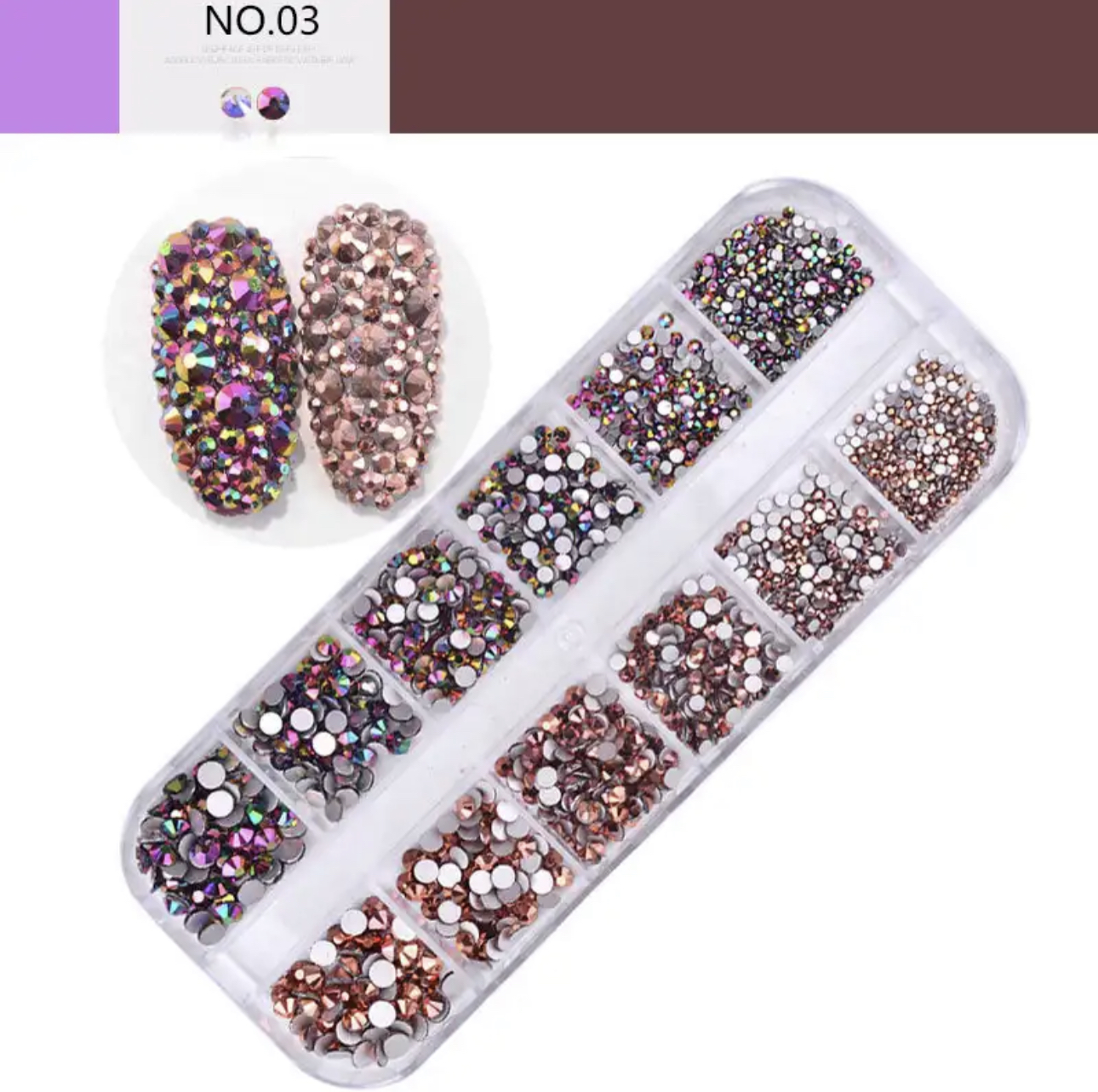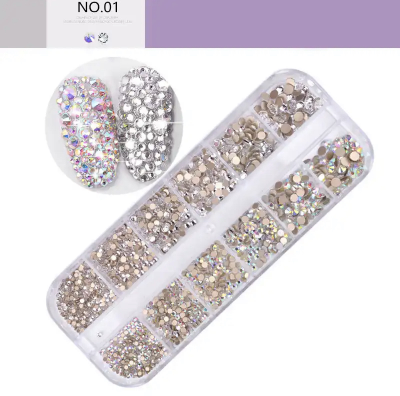Mix sizes and color flat back rhinestone in a box (CHB00808)