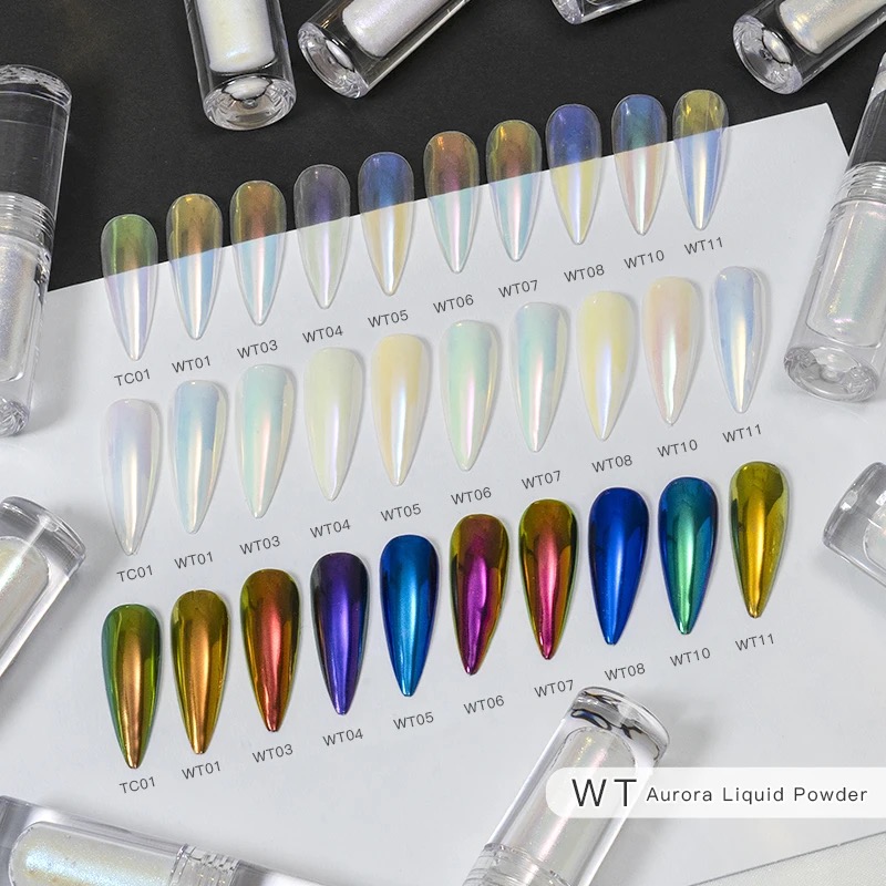 Tags: Powder 10 Color Tube Liquid Mirror Chrome Powder with Brush Inside for Professional Nail Art Manicure Nail Glitter Pigment WT