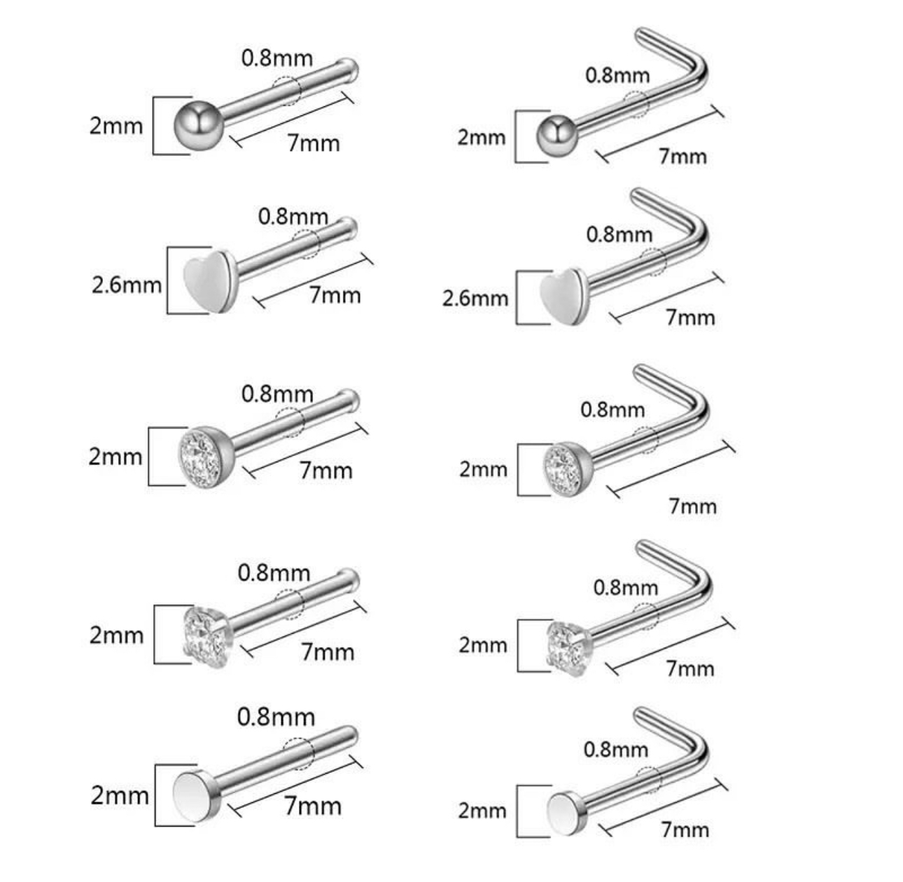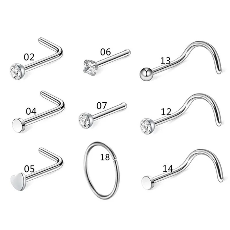 Tags: Stainless Steel Crystal Nose Stud Pack 20G L Shape Nose Rings Set Heart Nostril Piercing Set Straight Pin Body Piercing Jewelry