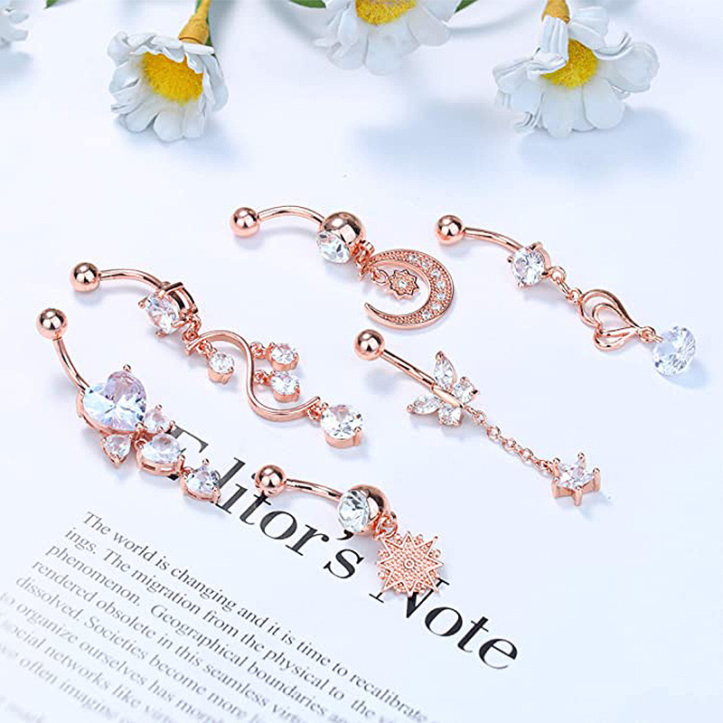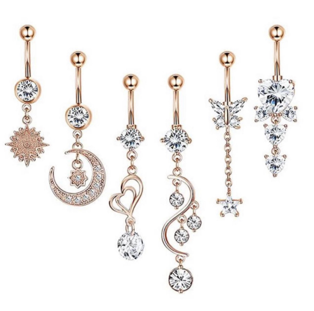 6pcs Rose gold Set of navel piercing ring pendant (CHB00930)