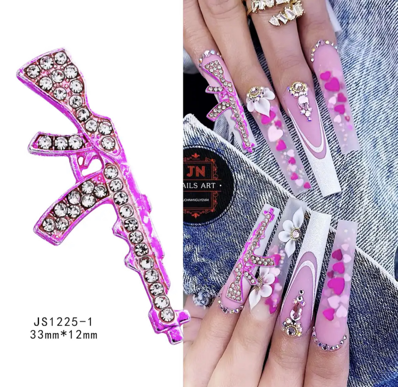 Chrome pink crystal gun nail jewelry (CHB01036)