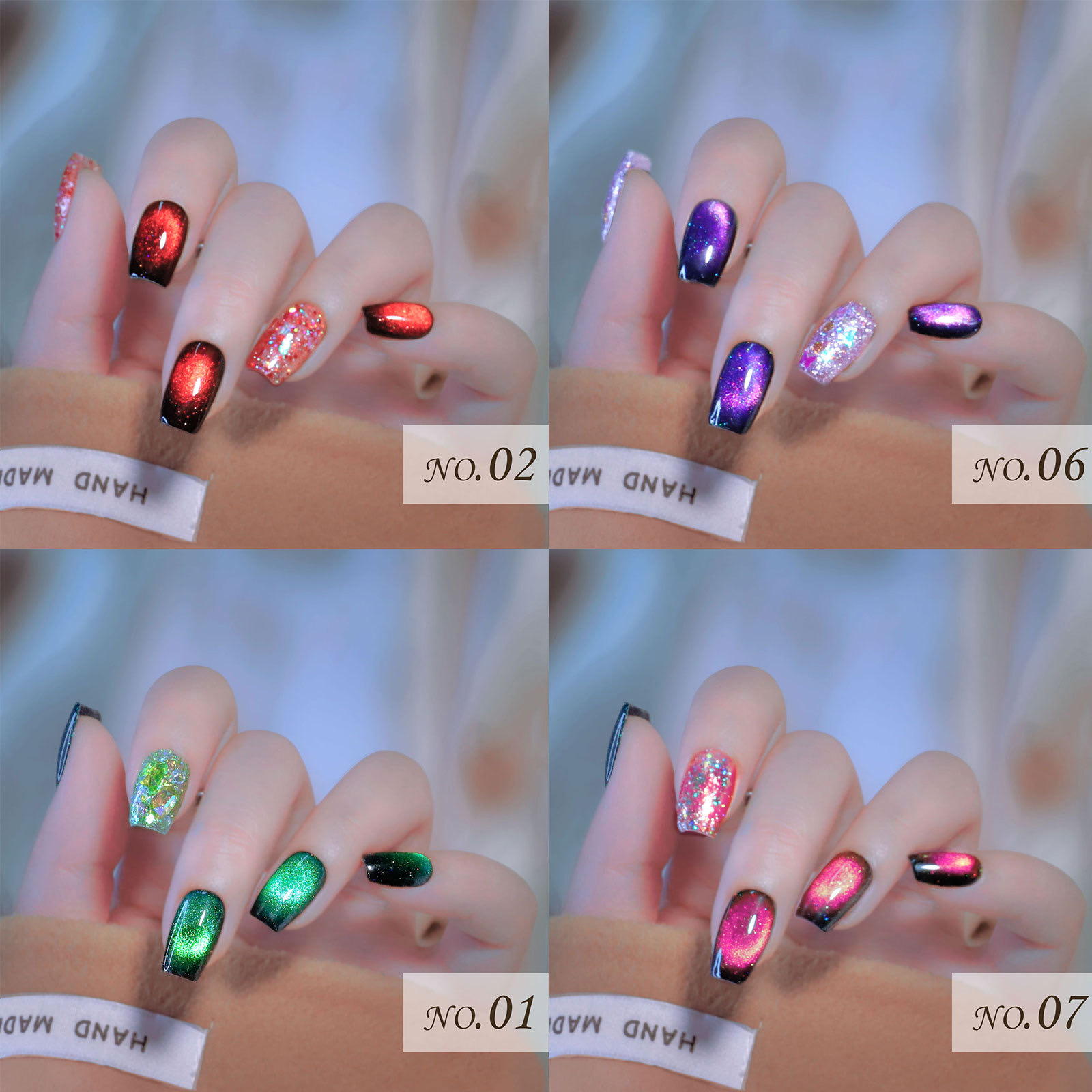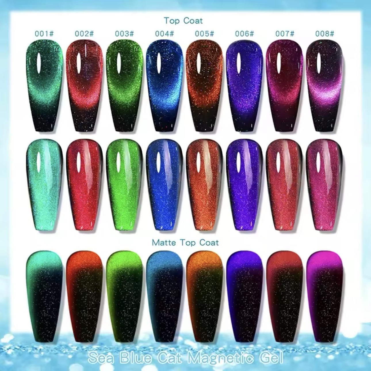 Set of 9pcs Rainbow cateyes gel+1 free magnet (CHB01571)