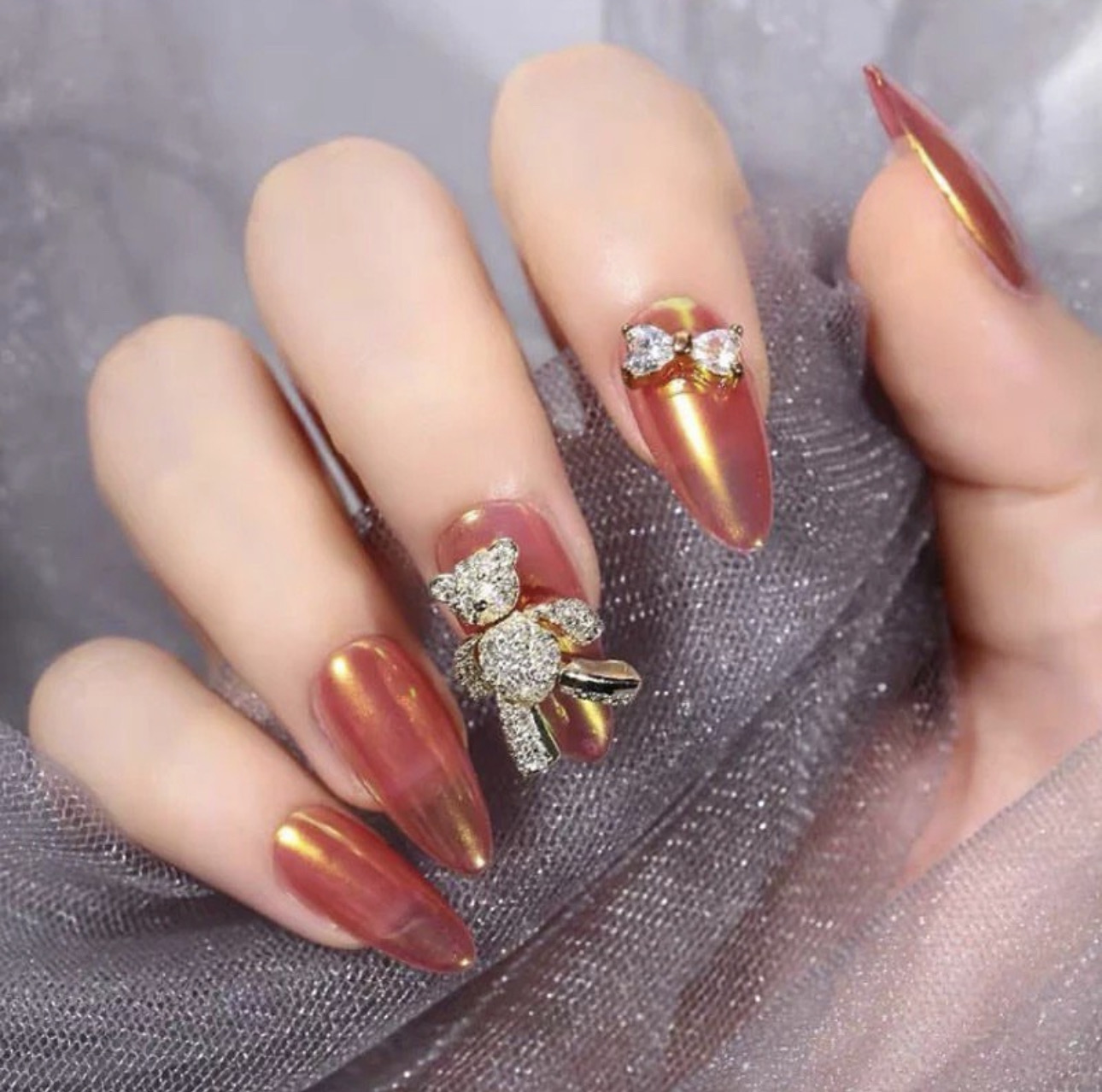 Zirconia bear Nail art jewelry
