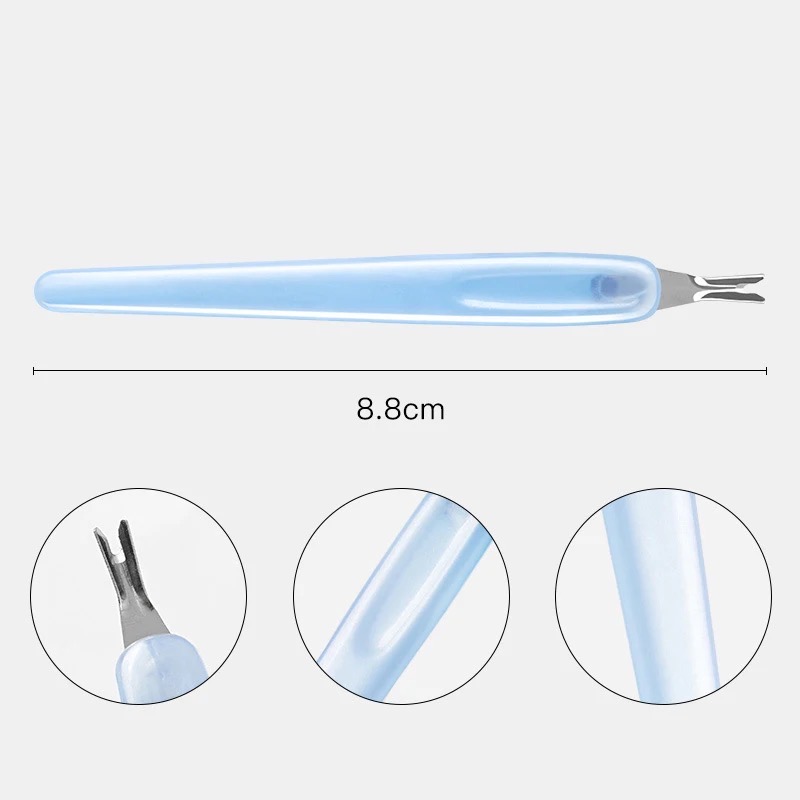 High quality cuticle removing tool with sharp V-shaped blade Safely and quickly trim superfluous cuticles and hangnails The round end can also be used as a cuticle pusher tool Suitable for both professional salons and home use Usage: Remove and Trims cuticles and hangnails Material: plastic + metal Size: 11 cm Package included: 180 x Dead skin fork