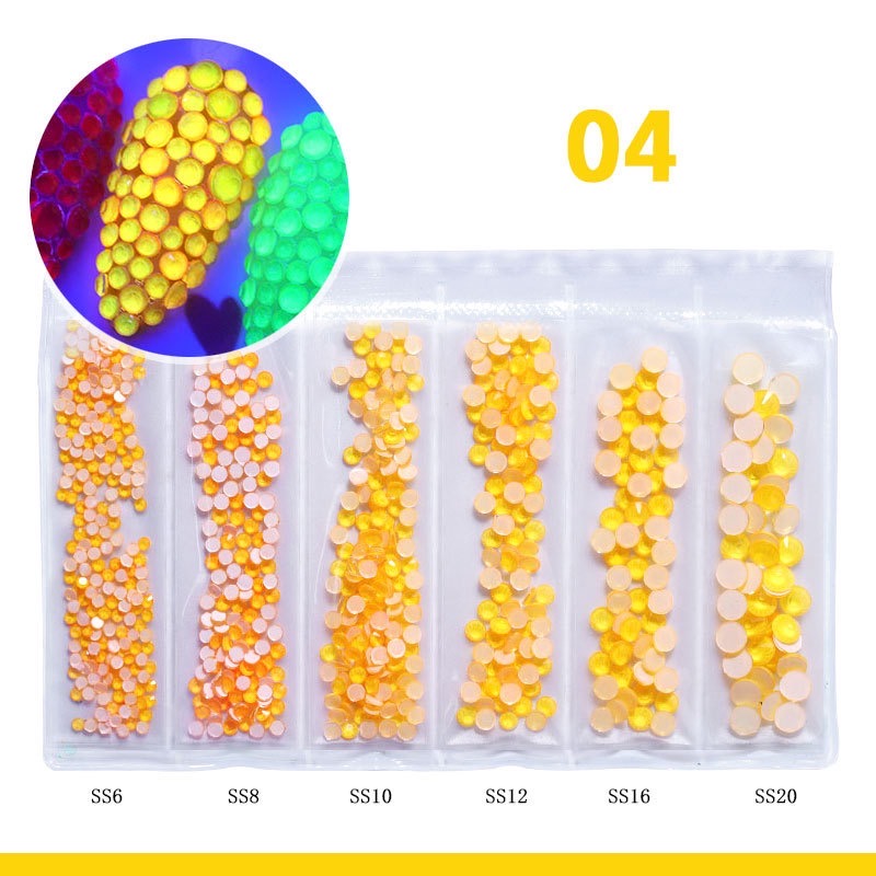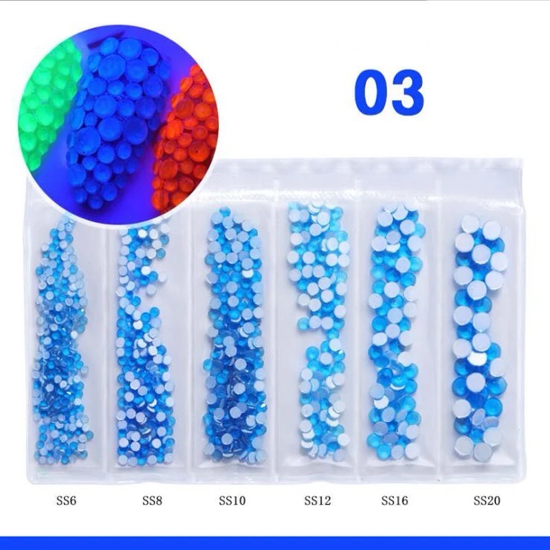Item Name: Fluorescence Crystal Nail Art Rhinestone Material of nail art rhinestones: Crystal Glass Color of nail art rhinestones: Crystal ab / clear color Shpae: Round Flat Back Facets: 12 cut Stone Size: ss12---ss30 Technics: Glue On, Non Hotfix Rhinestones Type: Loose Rhinestones The Back: Silver Foiling Condition: High Quality and Brand New Grade: AAA, MC Use: Bags, Garment, Nail Art, Shoes, Cell Phone, Box, Pen, Furniture, Greeting Cards, etc Technique: Non Hotfix (Need Glue on Backs)