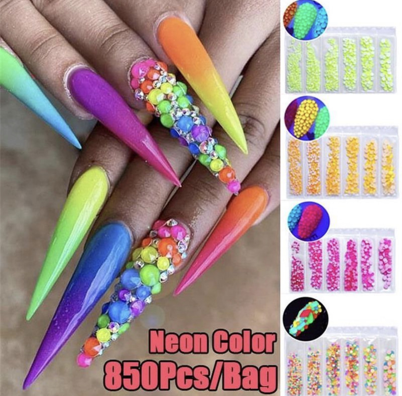 1440pcs Mix sizes neon color rhinestone