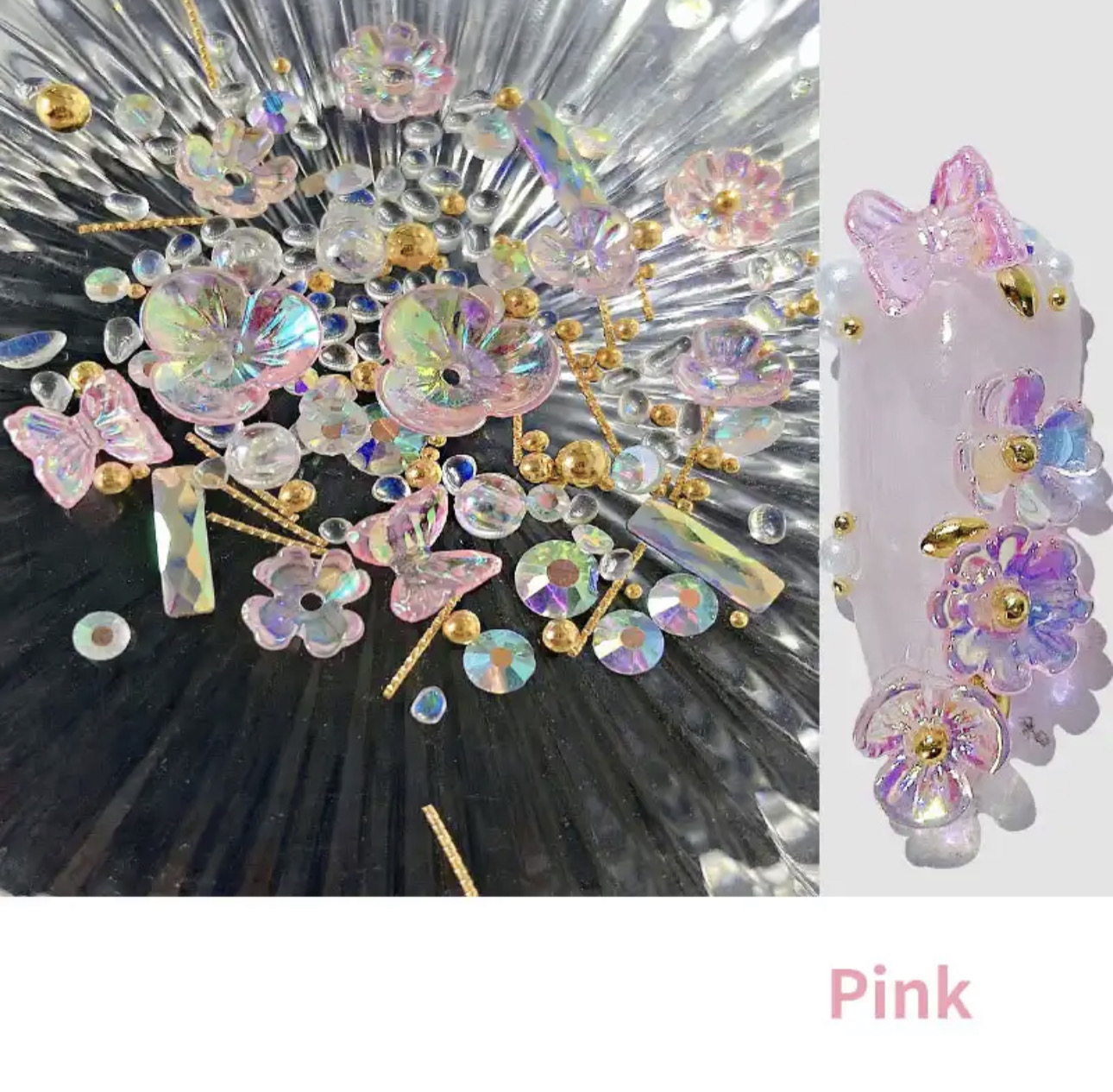 Crystal flower with butterfly 3D nail design (CHB01185)