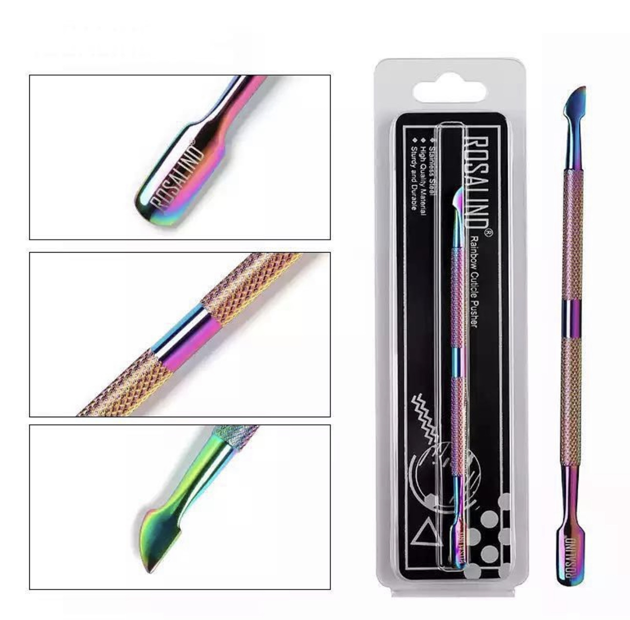 Dual end Rainbow Stainless steel cuticle pusher (CHB00435)