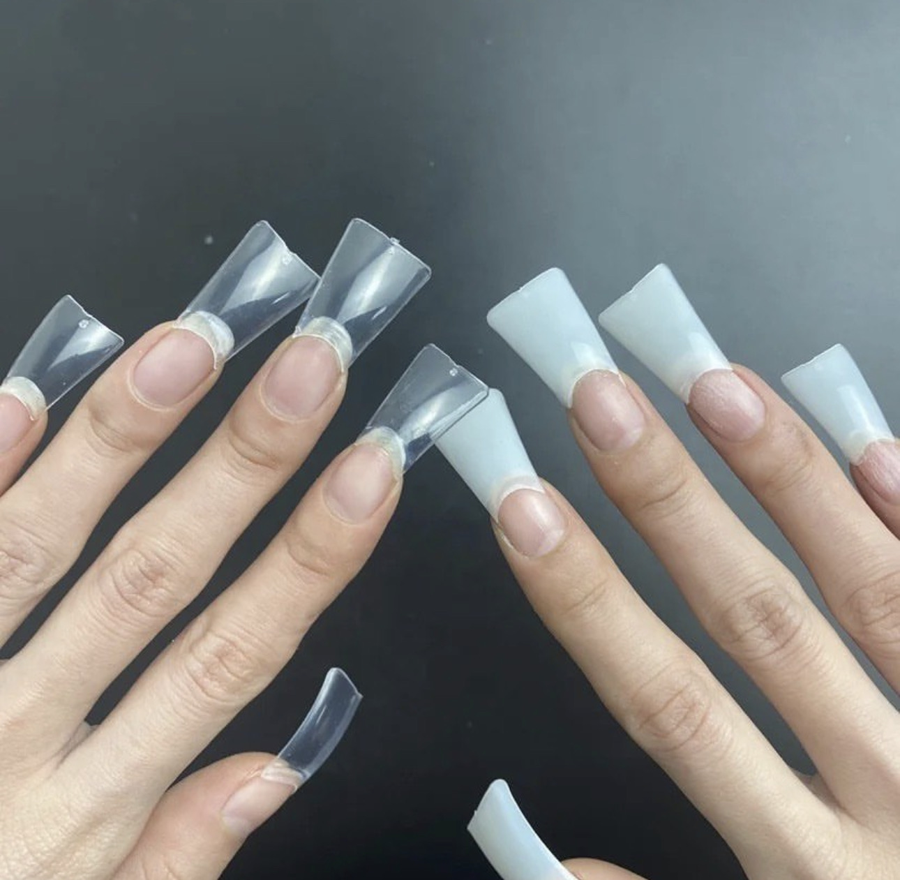 High Quality Material】: Clear nail tips adopts quality soft gel material, made clear nail tips structure is firm and not easy to break;The gel x is kind of green environmental material,makes clear nail tips durable and breathable. Duck nail tips give you a safe and comfortable manicure experience.Thickness and firmness of the acrylic false curve nails are sturdy enough to last about 2-3 weeks, clear nail tips with a long service life,providing you with a safe and comfortable experience. 【Duck Nail Tips Design】: The appearance of clear nail tips is shaped like a duck feet, and the design of the bottom narrow and wide french nails top allows more space for nail charms y2k DIY creation of duck nail tips. The half cover false nails design of the duck nail tips will fit tightly to your natural nail without being bulky. The unique duck nail tips style allows you to enjoy the lovely and fashionable nail tips art experience and get more admiring eyes. 【Perfect 12 Sizes】: There are 240PCS of acrylic nails tips, and clear nail tips are available in 12 different sizes to fit most people's fingers. The number 0-11 is clearly engraved on the duck nails tips. Each size has 20PCS, so that you can find the suitable crystal duck feet style nail tips accurately and quickly when using.Half cover false nails for acrylic nails professional and beginners. How to use: 1. File the nail surface lightly. 2. Apply a very thin layer of base gel, and cure it under UV/LED lamp. 3. Select a suitable shape & size false nail tip. 4. Apply extension nail gel on nail mold, use nail art pen with slip solution to make gel smooth. 5. Stick it to your real nail and make sure it fully plying-up, and cure it under UV/LED lamp. 6. Remove the nail mold, triming the shape and polish your nails. 7. Apply gel top coat and cure it under UV/LED lamp.