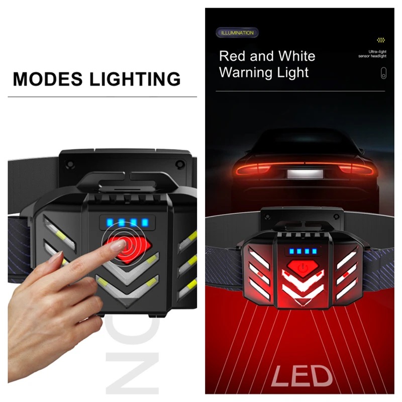 Tags: 2022 COB Camping Headlight Induction Built-in Battery Rechargeable Red Warning Cycling Head Light LED Portable Fishing Headlamp Eyelashes