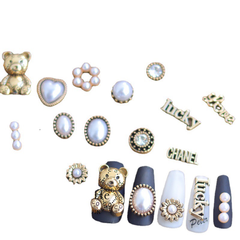 Pearl mix with retro gold nail jewelry (CHB01016)