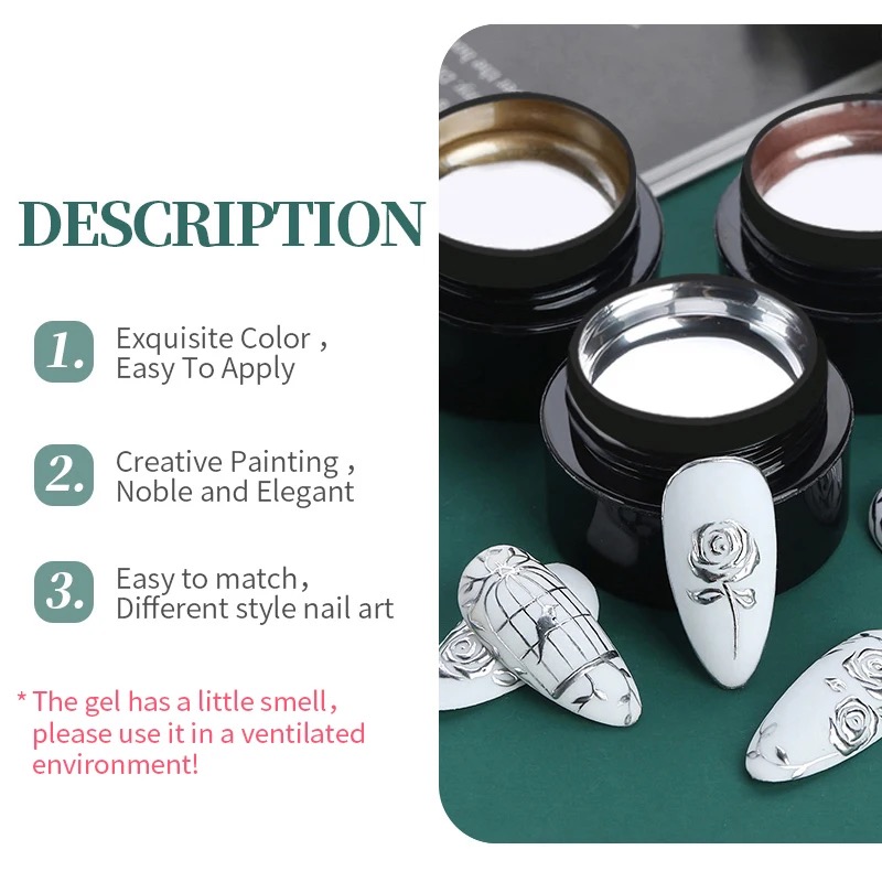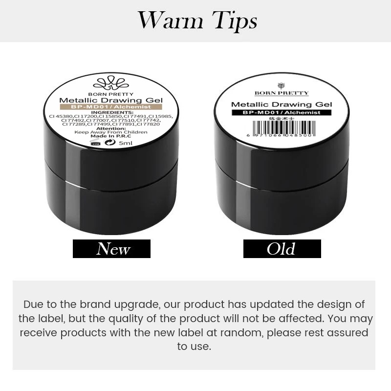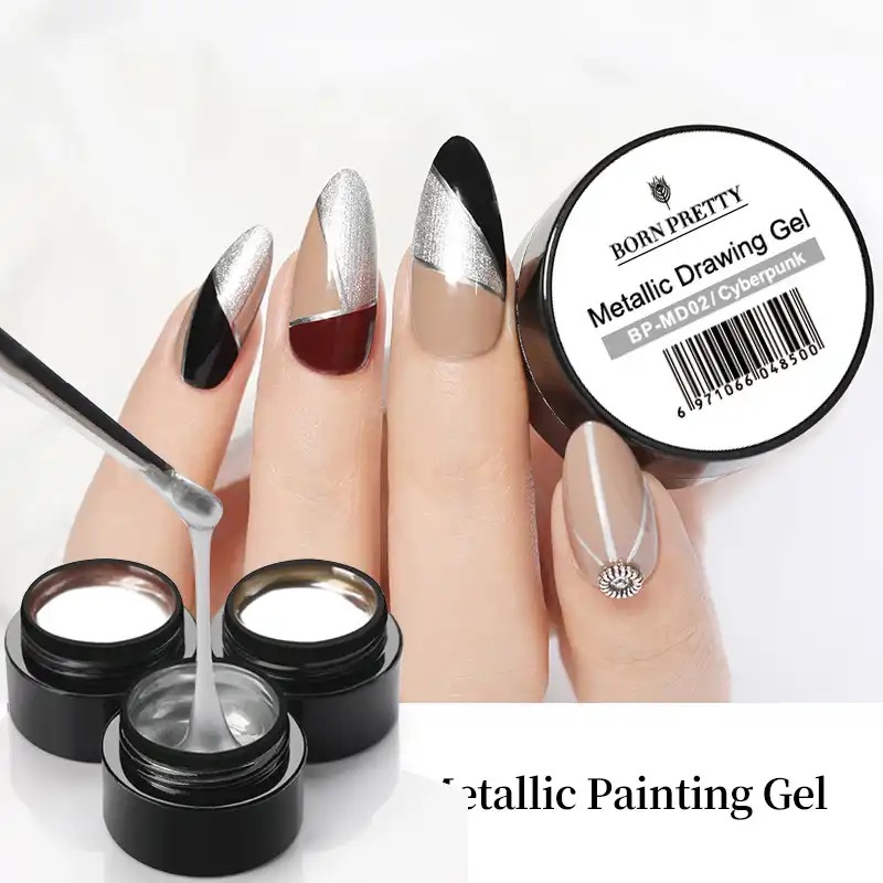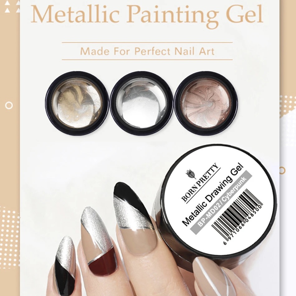 Product Description: Type: metallic Gel Polish Color Chart: 3 Colors for Choose Quantity: 1 Box Volume: Approx. 5ml Ingredient: Resin Long Period: About 15 Days Effect: Metallic Effect Certification: SGS, MSDS, REACH, CPNP Curing Tools: UV Lamp or LED Lamp 1 Box 5ml BORN PRETTY Metallic Painting Gel Polish Unique Selling Proposition: It made of healthy, environmental, friendly, no poisonous, pungent chemical materials. It is quick drying with any UV Light. Long lasting for at least 2-3 weeks, fantastic and super bright nails for you. This nail gel polish is easy to apply and soak off. Allow you for professional or home nail art design. A professional nail art gift for yourself or your girl friend. Professional usage: Step 1. Clean Nails then clip nail surface as normal nail art process. Step 2. Apply a layer of Base Gel and cure it. Step 3. Apply a layer of color coat and cure. Step 4. Use painting pen draw the petals and cure it. Step 5. Apply Top Coat. Remove Our UV Gel Nail Polish Step: • Soak nails in a bowl filled with a small amount of acetone, or wrap each nail in cotton pad soaked with acetone for around 5 to 10 minutes. • Product will start to become soft and you can gently file it away or slide it off using a small wooden stick. Warm Reminder: 1. Avoid all skin contact. If redness or other signs of adverse reaction occur, discontinue use immediately.2. Keep tightly sealed. Keep out of sunlight. Keep out of reach of children. NOTICE: Please avoid contact with skin. In case of accident or if you feel unwell, seek medical advice immediately (show the label whenever possible)
