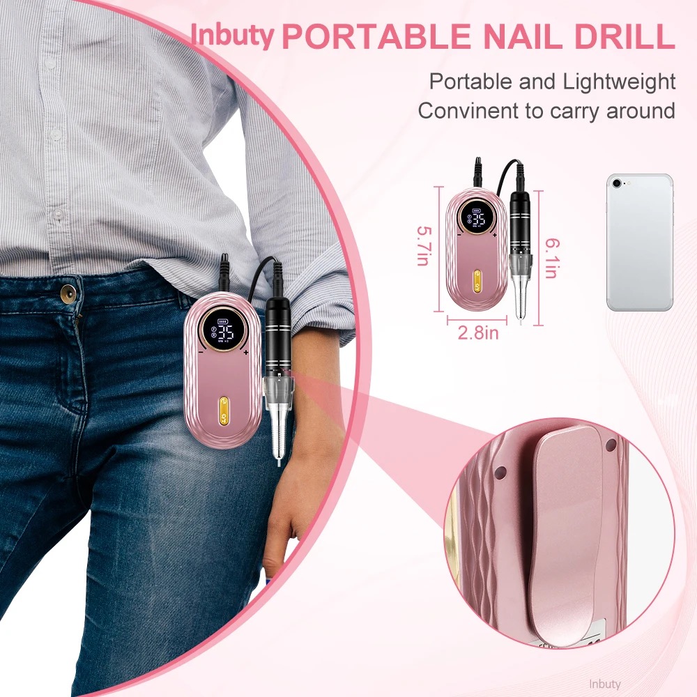 35000RPM Electric Nail Drill Machine File Portable Manicure Milling Cutter Set Gel Polishing Nail Drill Pen Salon Nail Equipment Description Features: 1. Stronger Motor with a Higher Speed : Professional acrylic nail drill in 35,000 RPM speed that offers more efficient nail filing and shaping and do your own nail art work like a pro. 2. Large Power Capacity for Longer Working Time: Built-in 2600mAh power capacity, full recharged 2 hours to work up to 10 hours straight working time. 3. Vibration-Free with Low Noise: Nail file machine creates about 50d sounds and almost 0 vibration. Smart heat dissipation prevents overheating. It can be used for manicure, pedicure, acrylic, gel, dead skin, callus and cuticle. 4. Easy to Use and Fully Functional: The manicure machine can be used as a Power Bank to charge your phone, and avoid the inconvenience of the phone power-off. Function super powerful, versatile and easy to work, even beginners can easily do manicure. Also ideal for both professional nail technicians and salon use. 5. Beautiful Design & Portable : Elegant design with advanced rose gold, smooth surface will provide comfortable grip for you. The palm sized handpiece allows you to take it everywhere you want. Plus the HD Smart LCD Screen to show the speed, direction and remaining power.